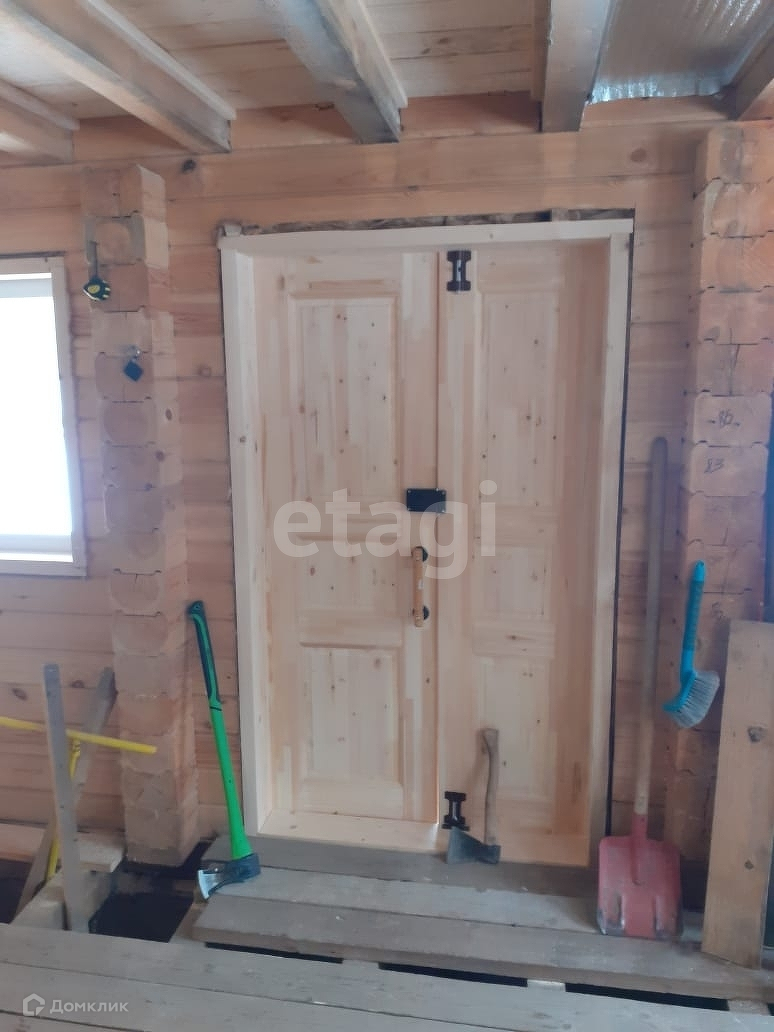 Требует внутренней отделки. Пиломатериалы на участке.