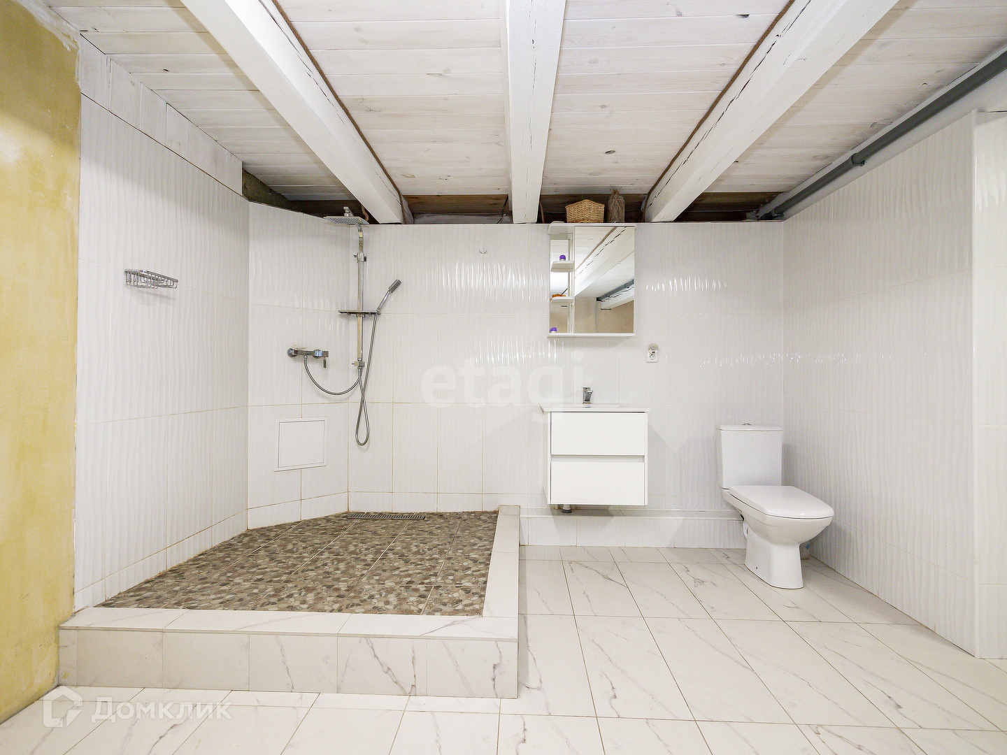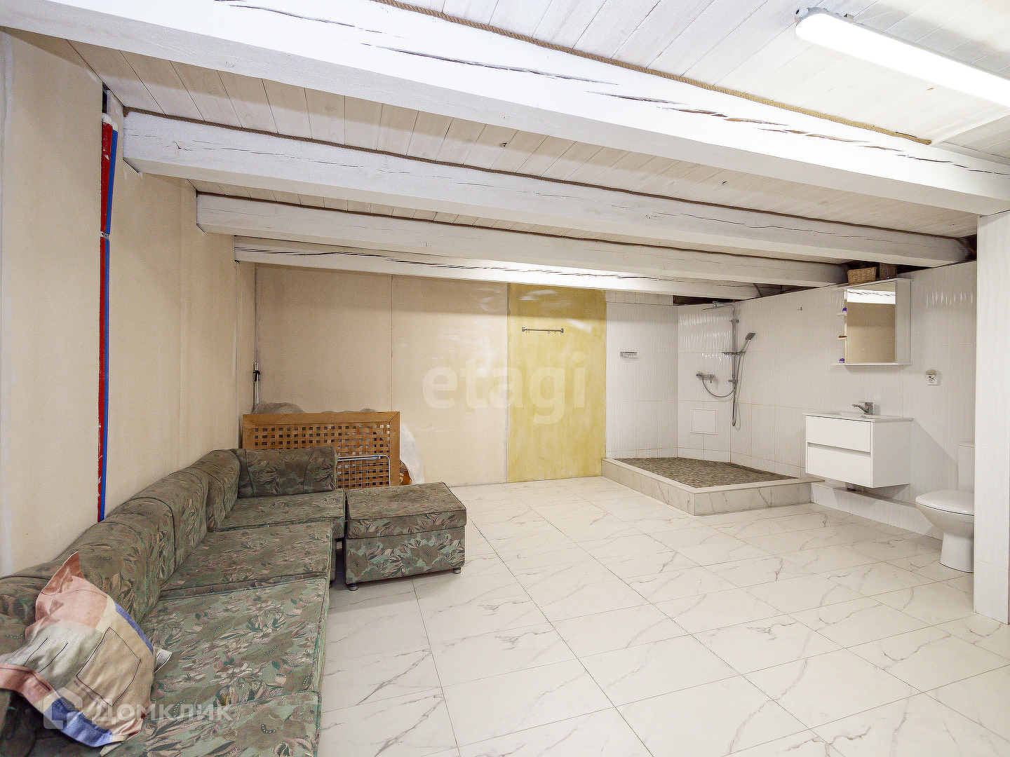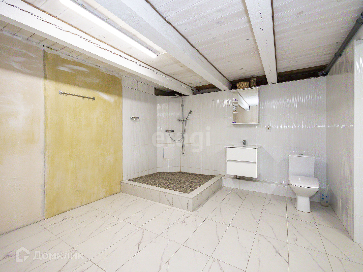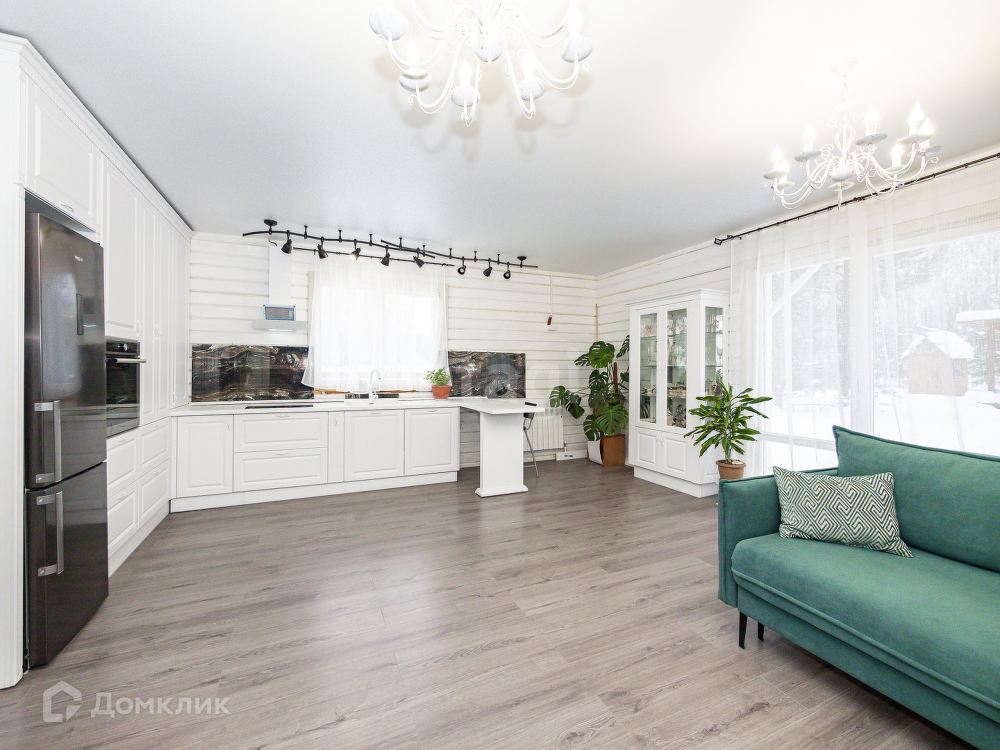 В доме 3 спальни + кухня гостиная площадью 32 кв.м. с вторым выходом на участок, 2 санузла, закрытая веранда. Высокие потолки.