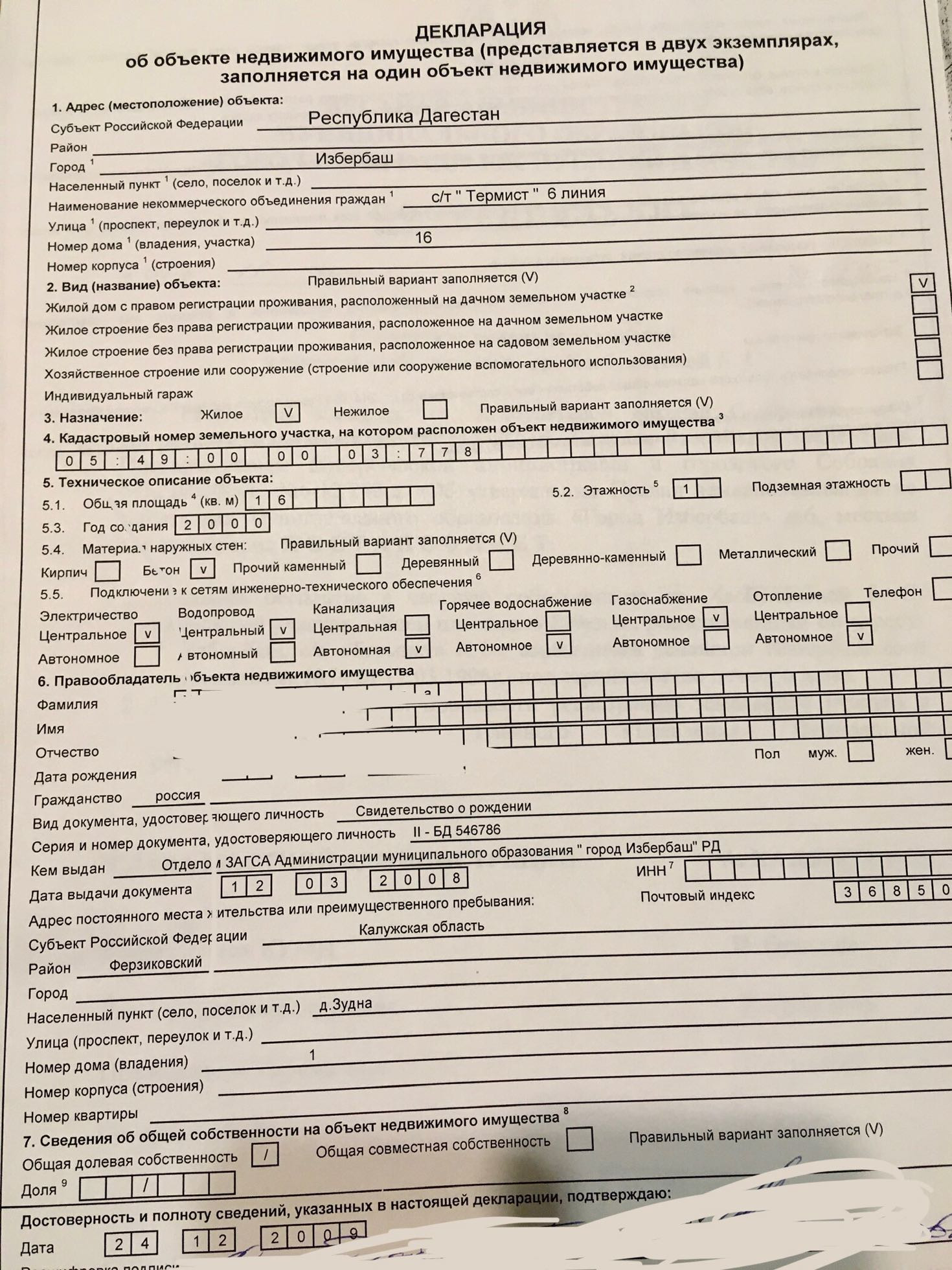 Площадь участка 6 сот.
