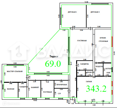 Общая площадь 412 м2