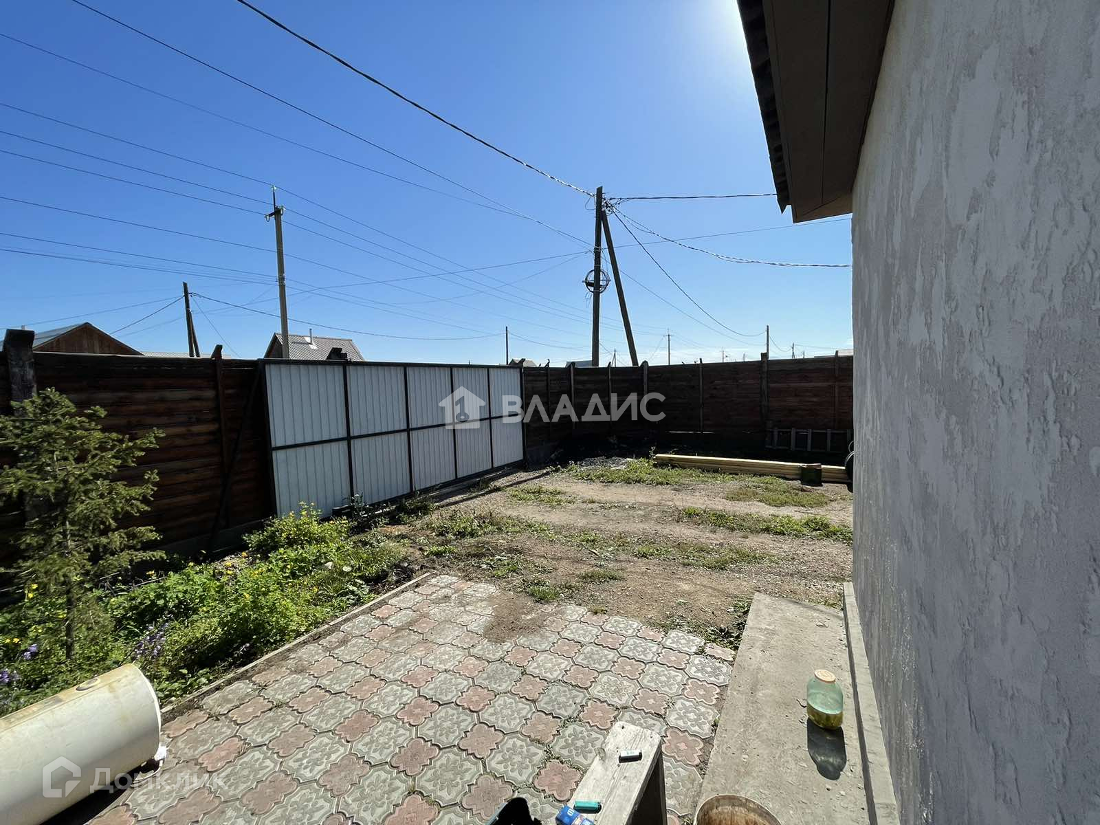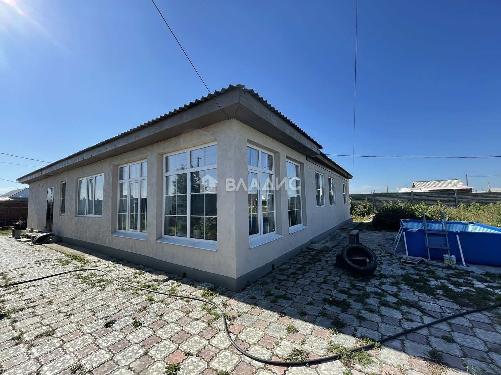 Просторный двор, уложенный двухцветной тротуарной плиткой
