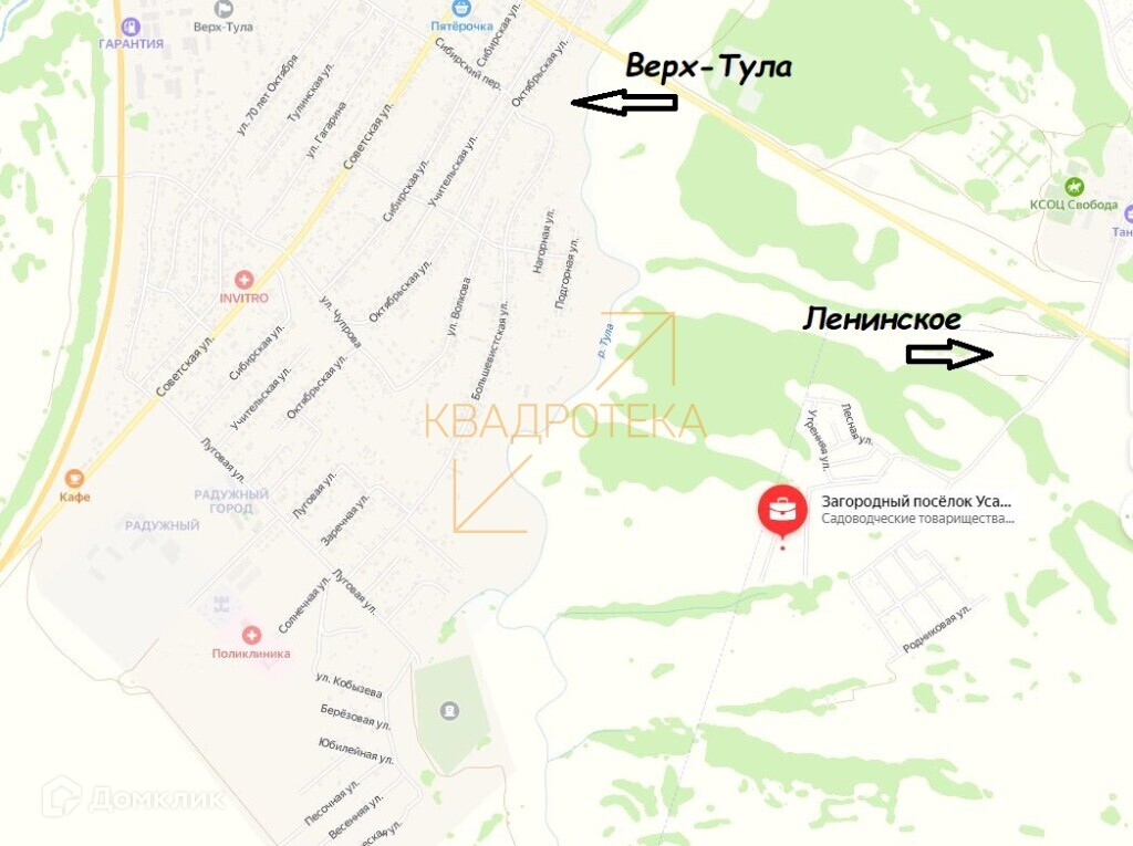 Номер варианта в агентстве: КИР23000167. Продам земельный участок под строительство дома в поселке «Усадьба».  1 км от Верх- Тулы в сторону с Ленинское. Удобное расположение поселка, круглогодично ходит автобус 115. Из поселка два выезда: через село Ленинское в сторону ОбъГэс и через Верх-Тулу на Ордынскую трассу.  Возможность круглогодичного проживания, регистрации, рядом новая школа, детские сады, вся инфраструктура поселка Верх-Тула.  Земля в собственности, есть кадастровые выписки. Отсыпана дорога шириной 9 м.  В стоимость входит электричество и грунтовая дорога с твердым покрытием до границ вашего участка.  Дополнительно оплачивается комиссия Покупателем.