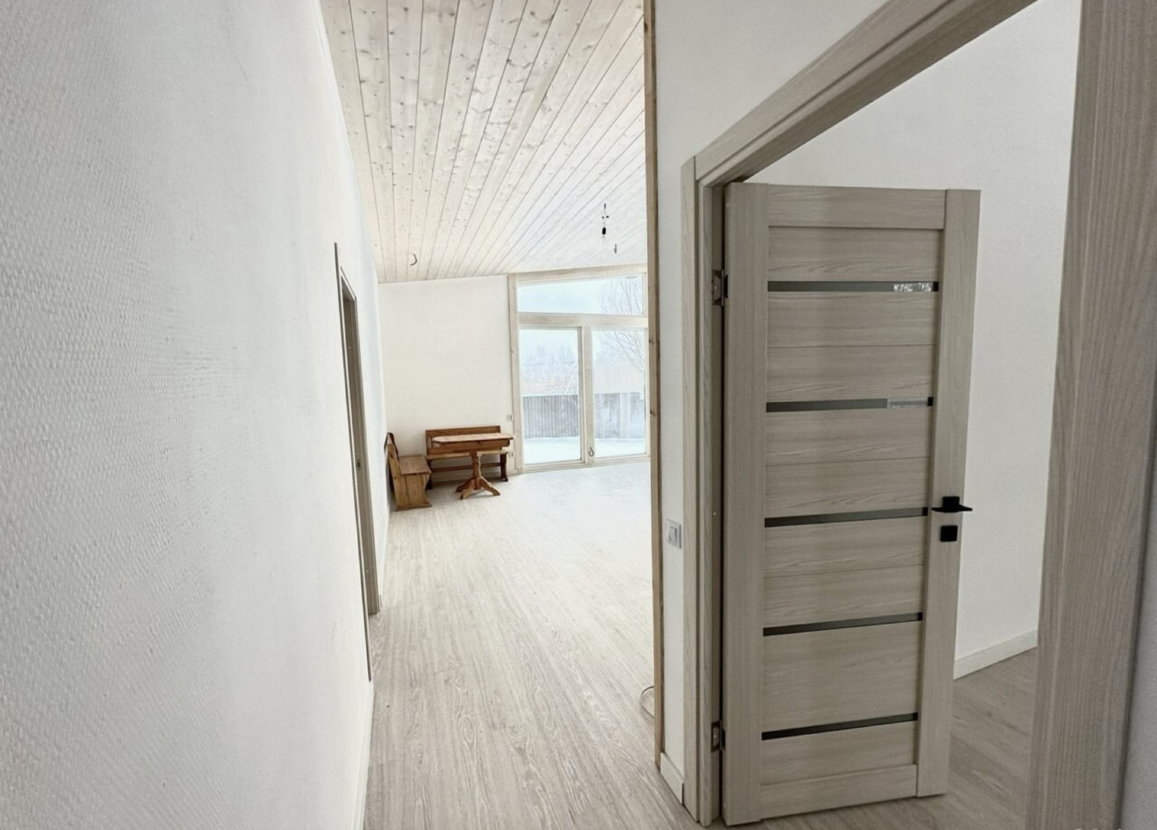 Отличная планировка: коридор, 2 спальни из одной из них выход на террасу, раздельный санузел, который будет полностью оборудован и большая кухня-гостиная с панорамными окнами.