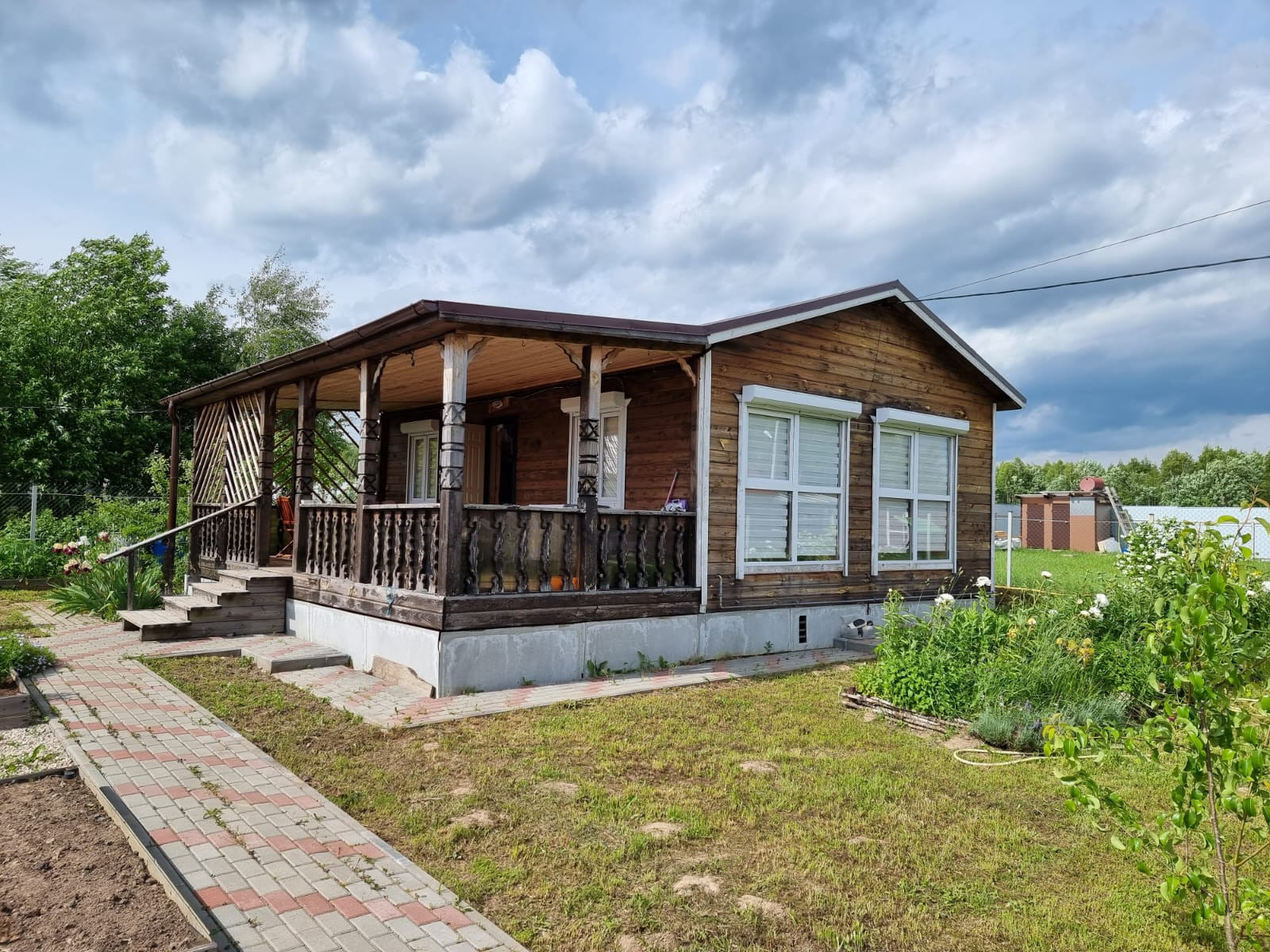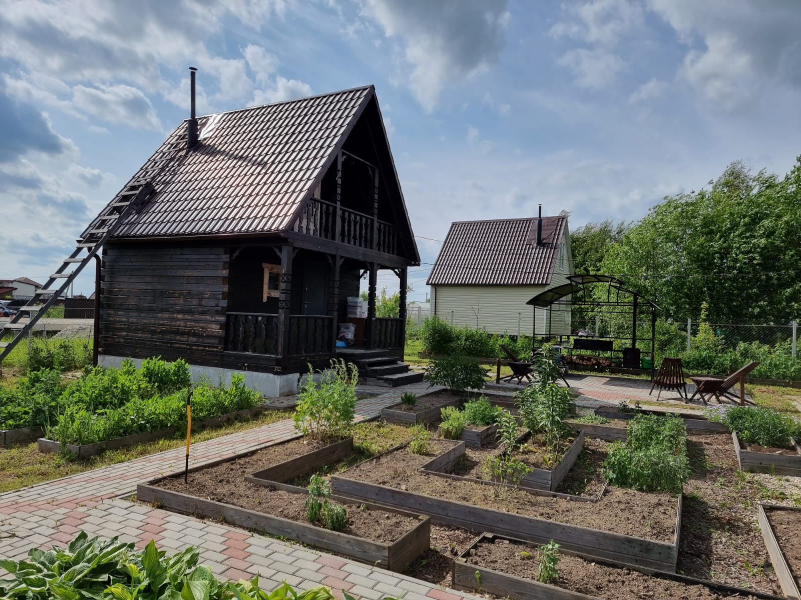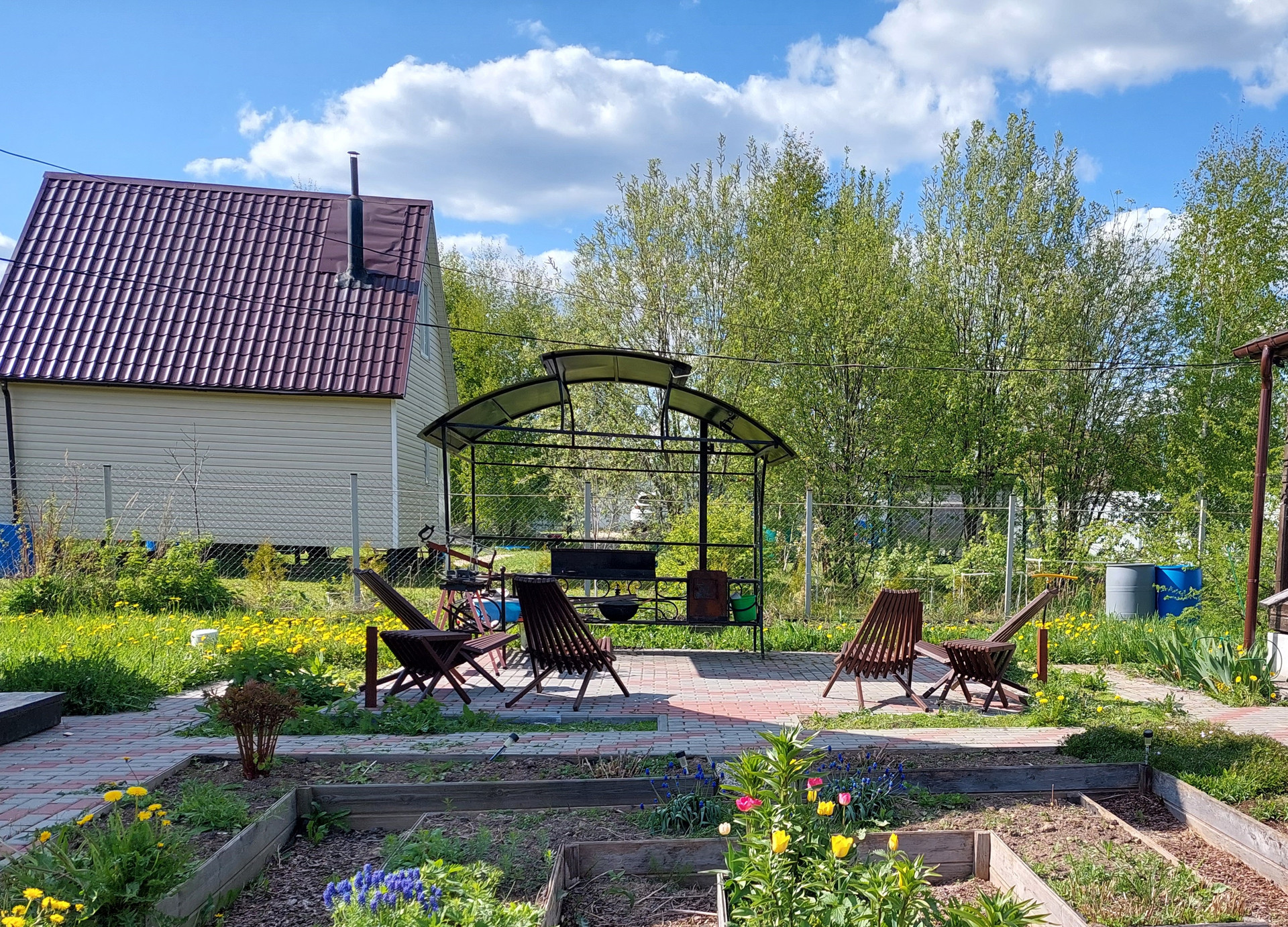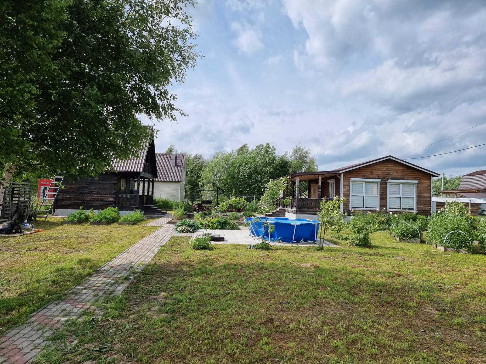 Участок 12 соток, ровный, правильной прямоугольной формы, ухожен, выложены дорожки и парковка для автомобиля. Есть баня с комнатой отдыха на втором этаже, хозблок, теплицы с автополивом. Много цветов. Подъезд асфальтная крошка, дороги зимой чистят, многие живут круглый год.