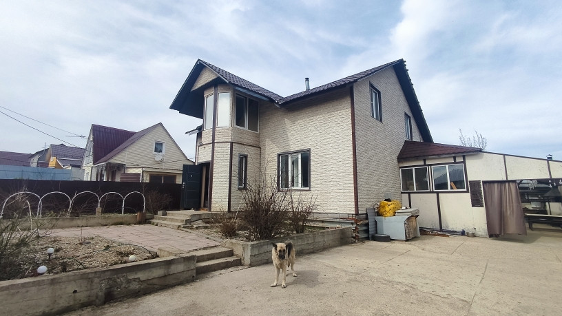 Дом 2-х этажный, ширина дома 11 м, длина 13 м, фундамент сваи, перекрытия 1 эт- ж.б плиты, 2 ой- этаж дерево, внутренние стены 1-ый этаж блоки, 2-ой этаж каркас. Дом утеплён мин ватой и обшит фасадными панелями под камень, окна ПВХ, балкон на 2-ом этаже, Крыша, металлочерепица + мин вата 200.