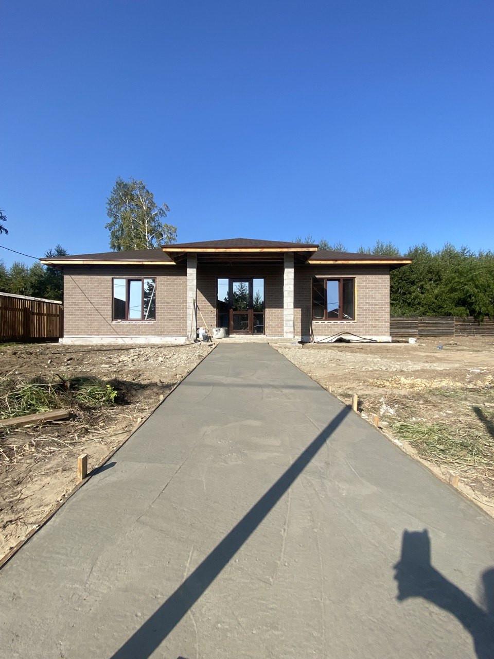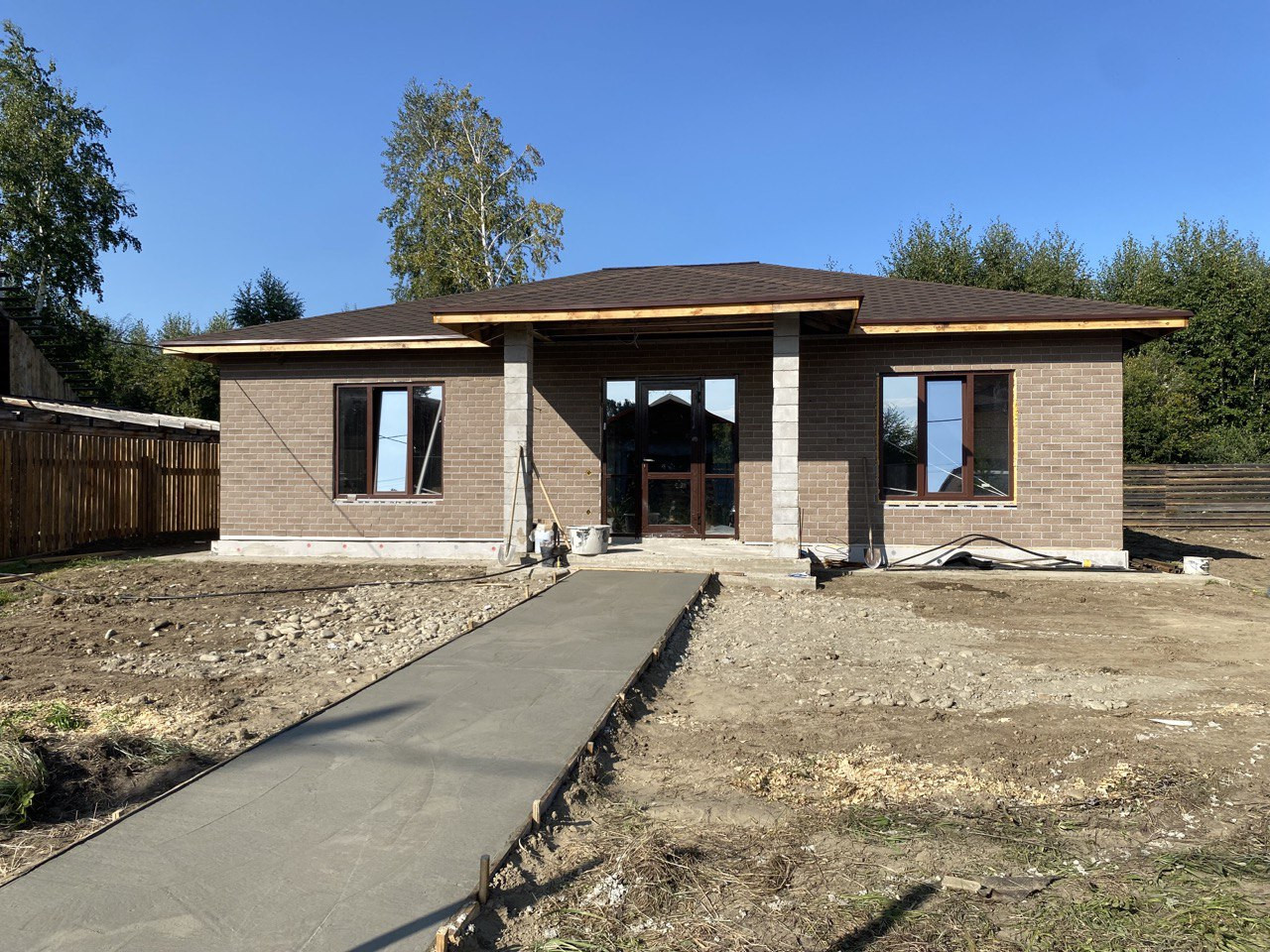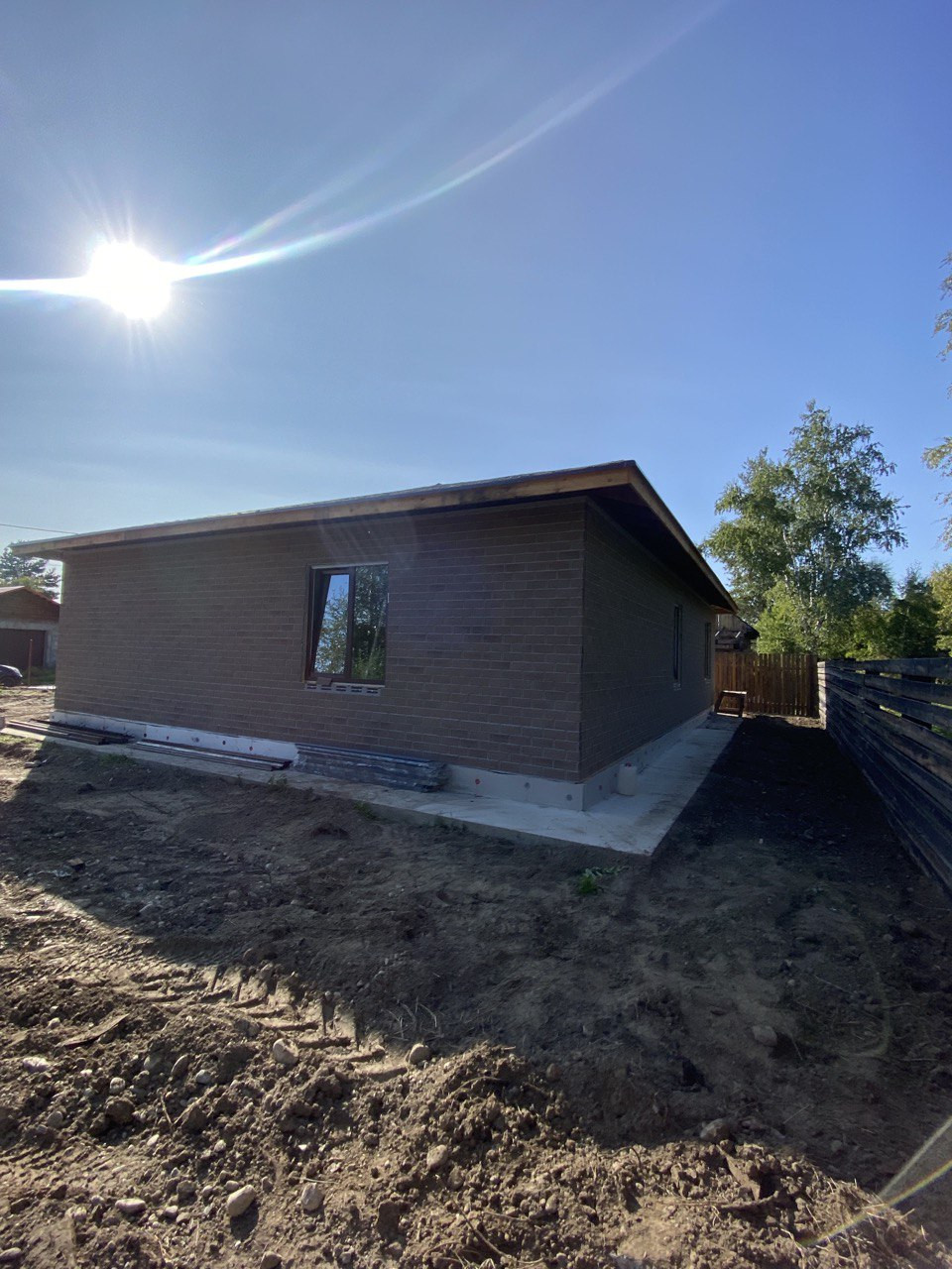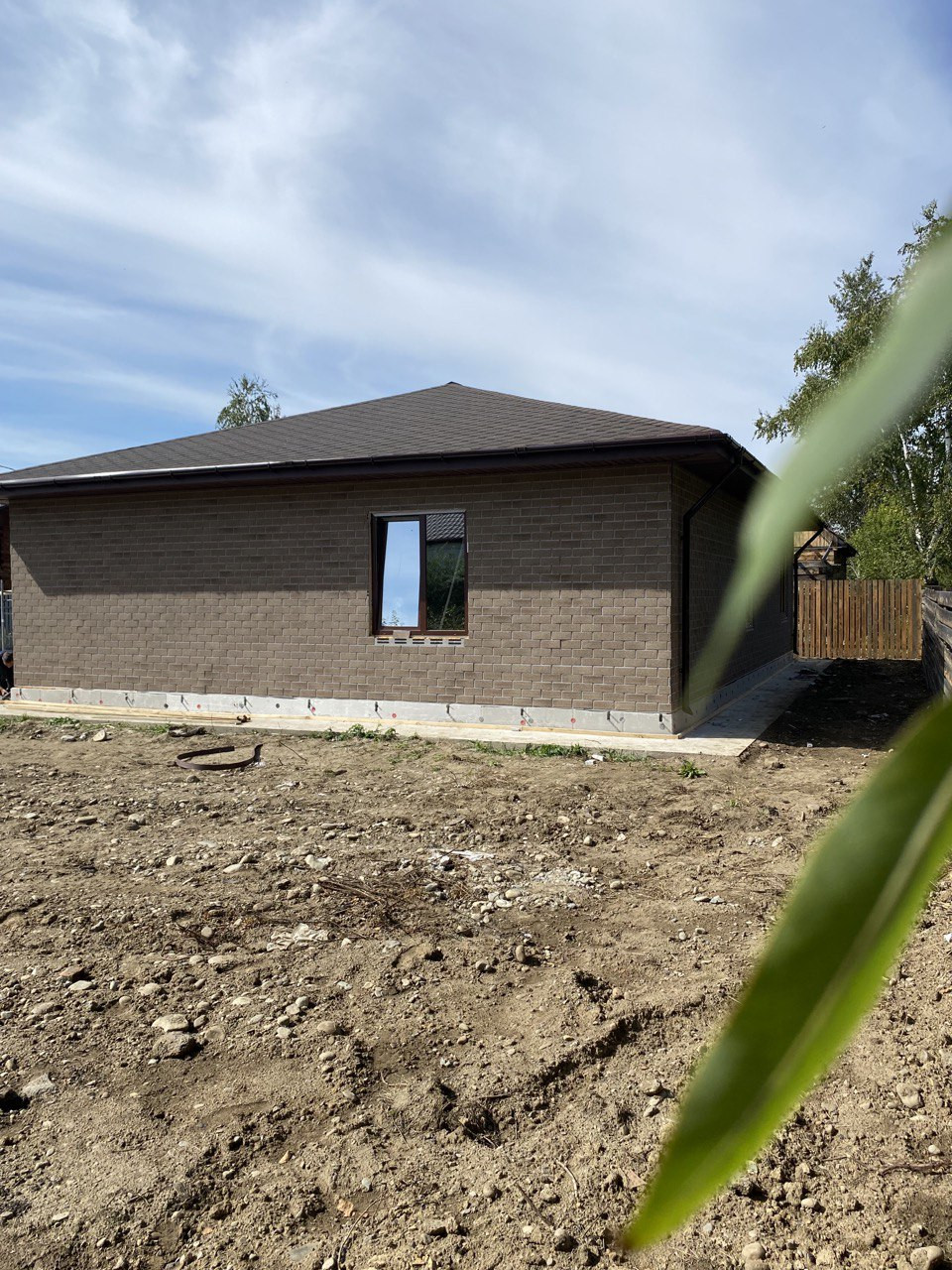 Дом стоит на ленточном фундаменте. Дом из газобетона.