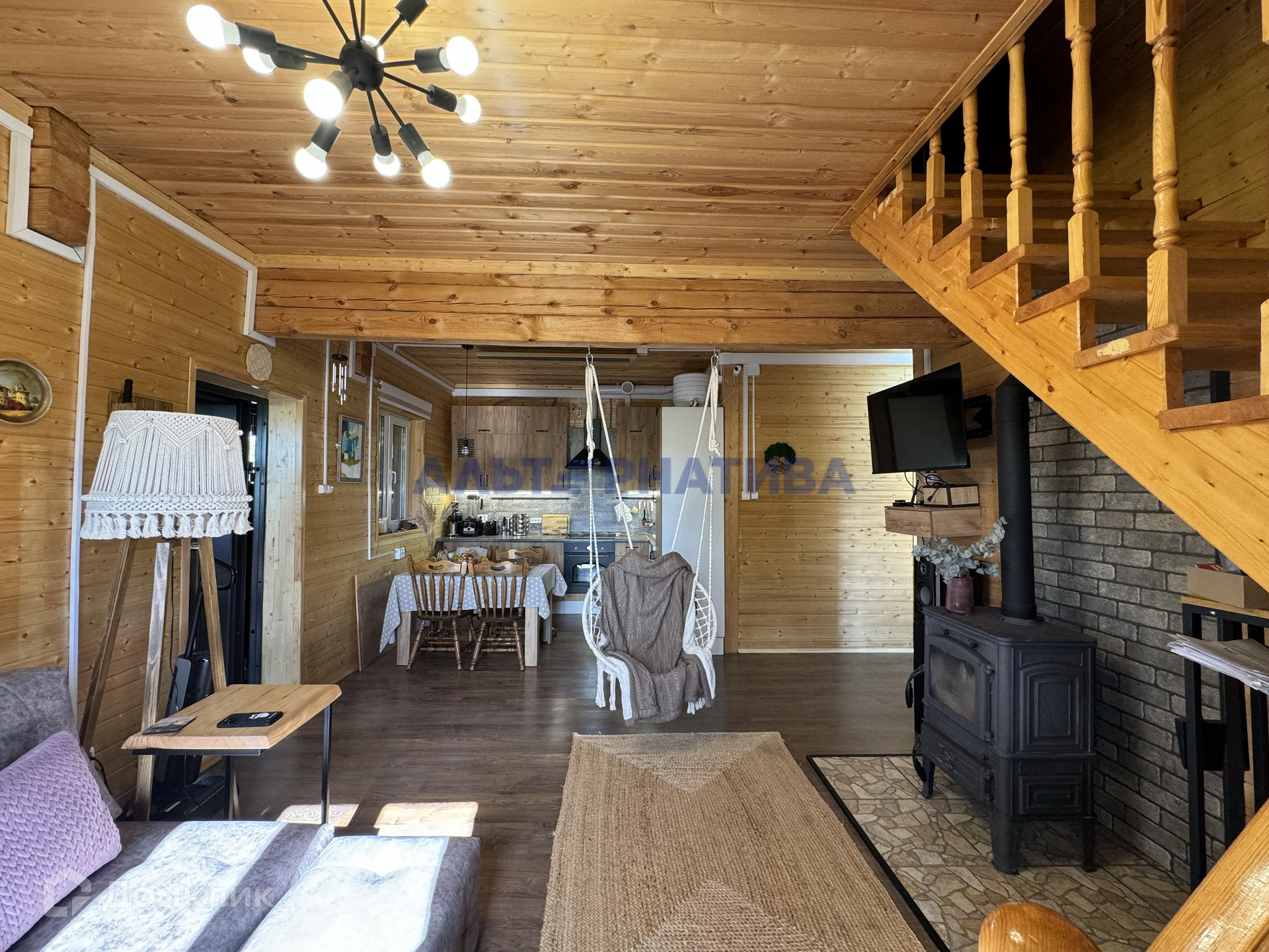 Дом оформлен, общая площадь 150 кв.м. При строительстве этого дома использовались исключительно качественные материалы. Дом утеплен снаружи и обшит блок-хаусом. Также установлена качественная входная металлическая дверь, лестница удобная для шага, также для удобства сделан люк на чердак и подвал.
