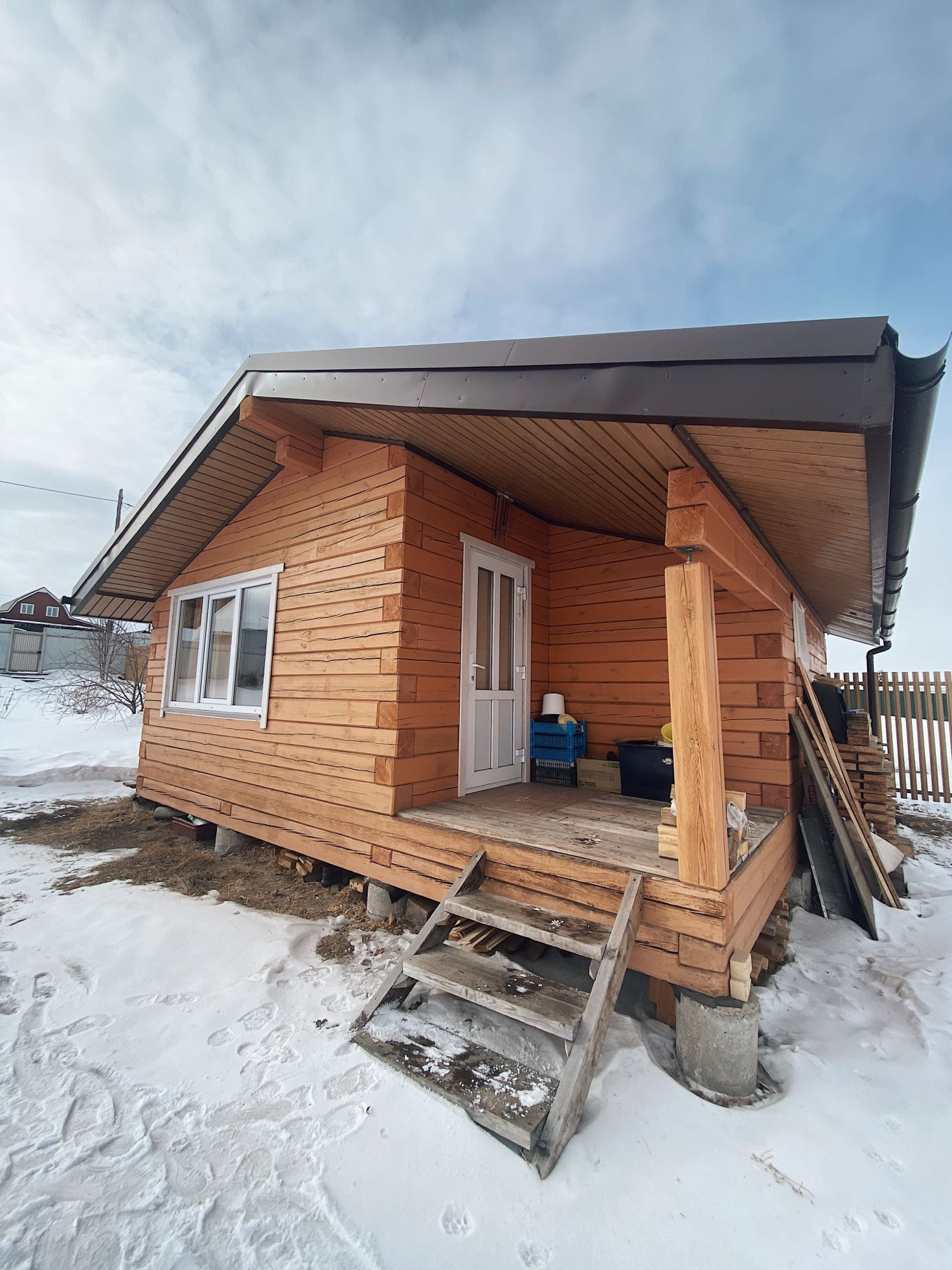Из построек- баня с комнатой отдыха 36 кв.м. Выполнена из бруса 180х180.