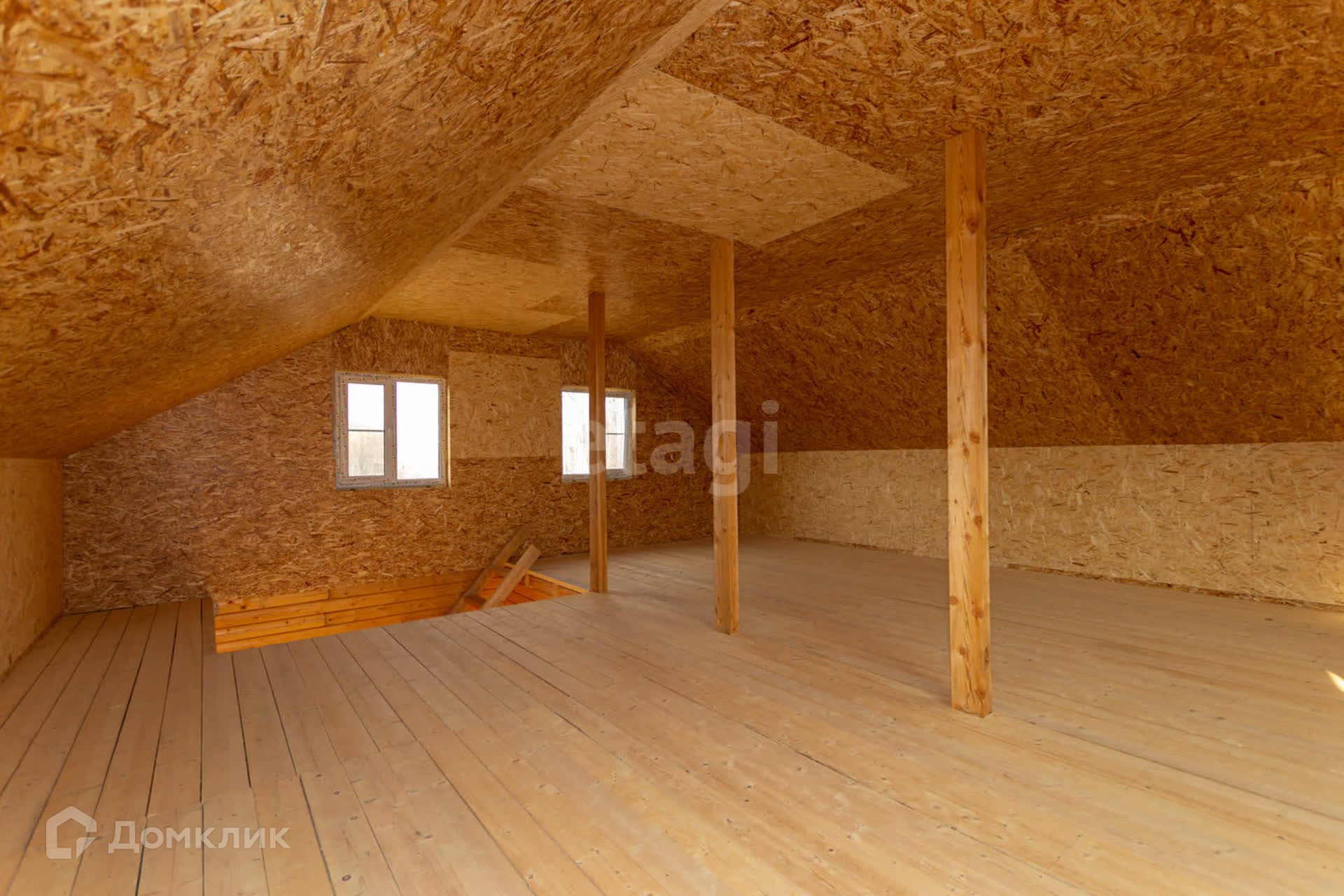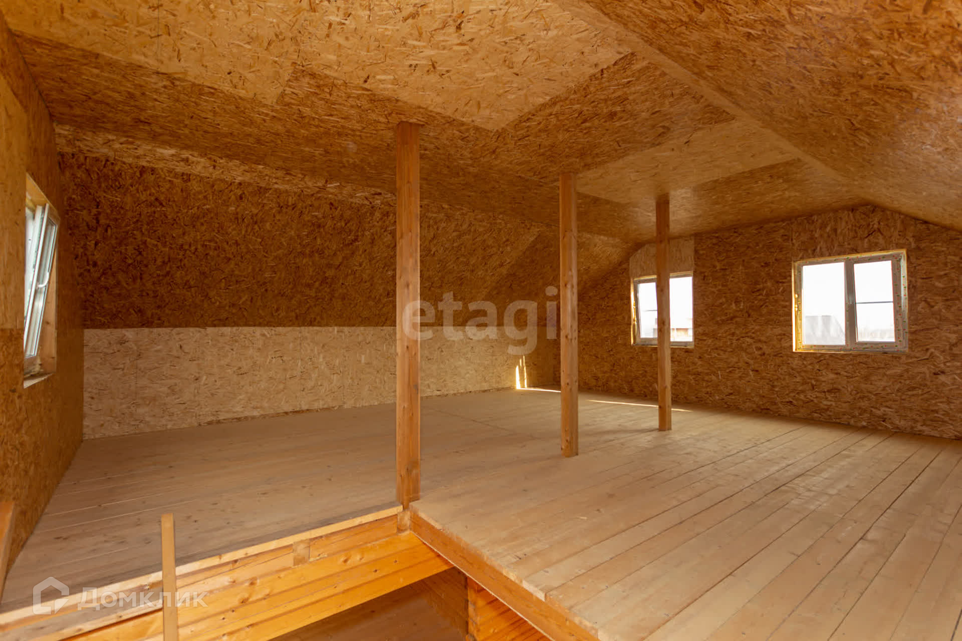 Дом имеет мансардный этаж, общая площадь составляет 110 кв.м. На первом этаже расположена просторная гостиная, кухня, спальня и санузел. Второй этаж не имеет перекрытий, Вы сможете распланировать его по своему желанию.