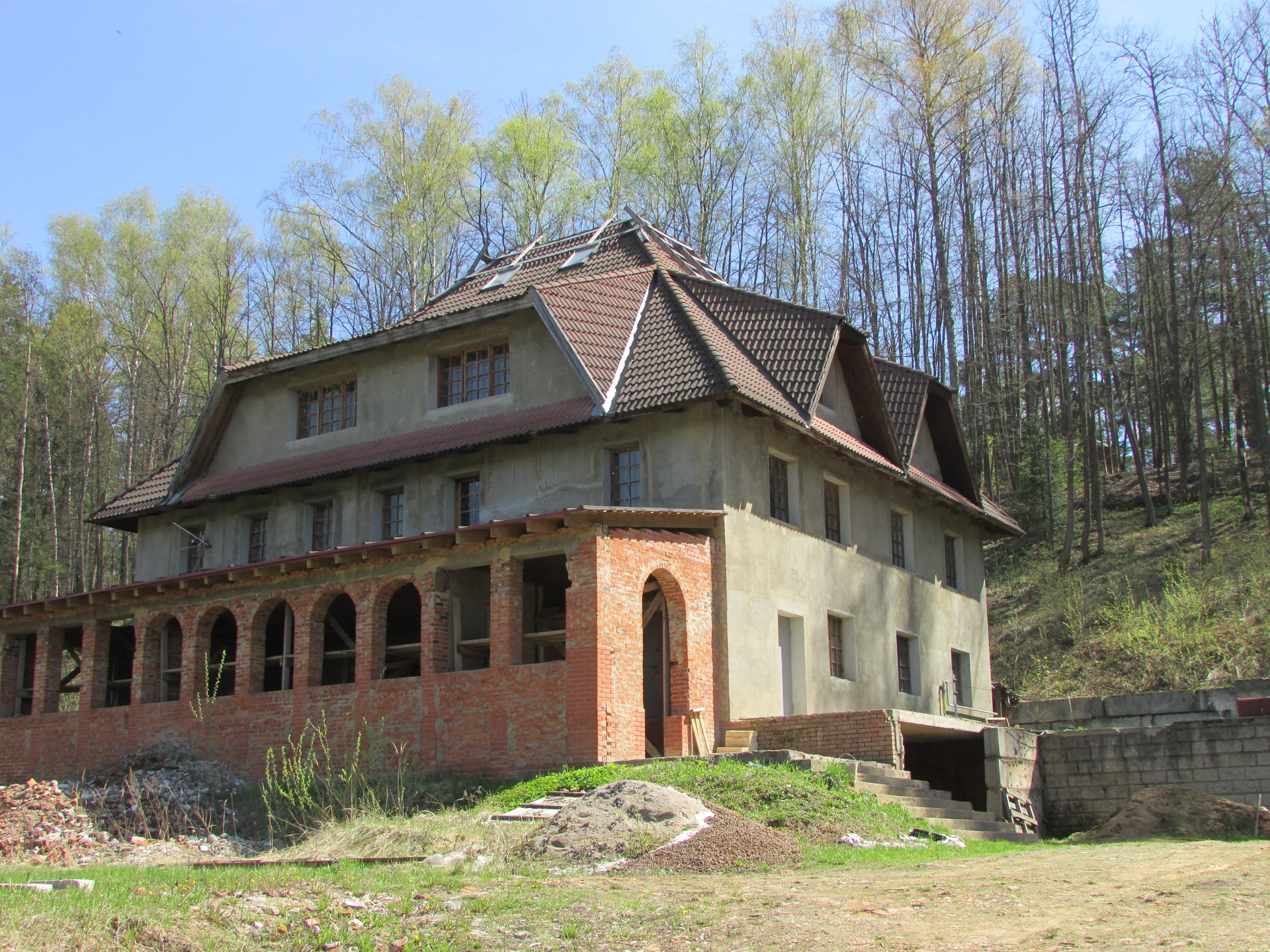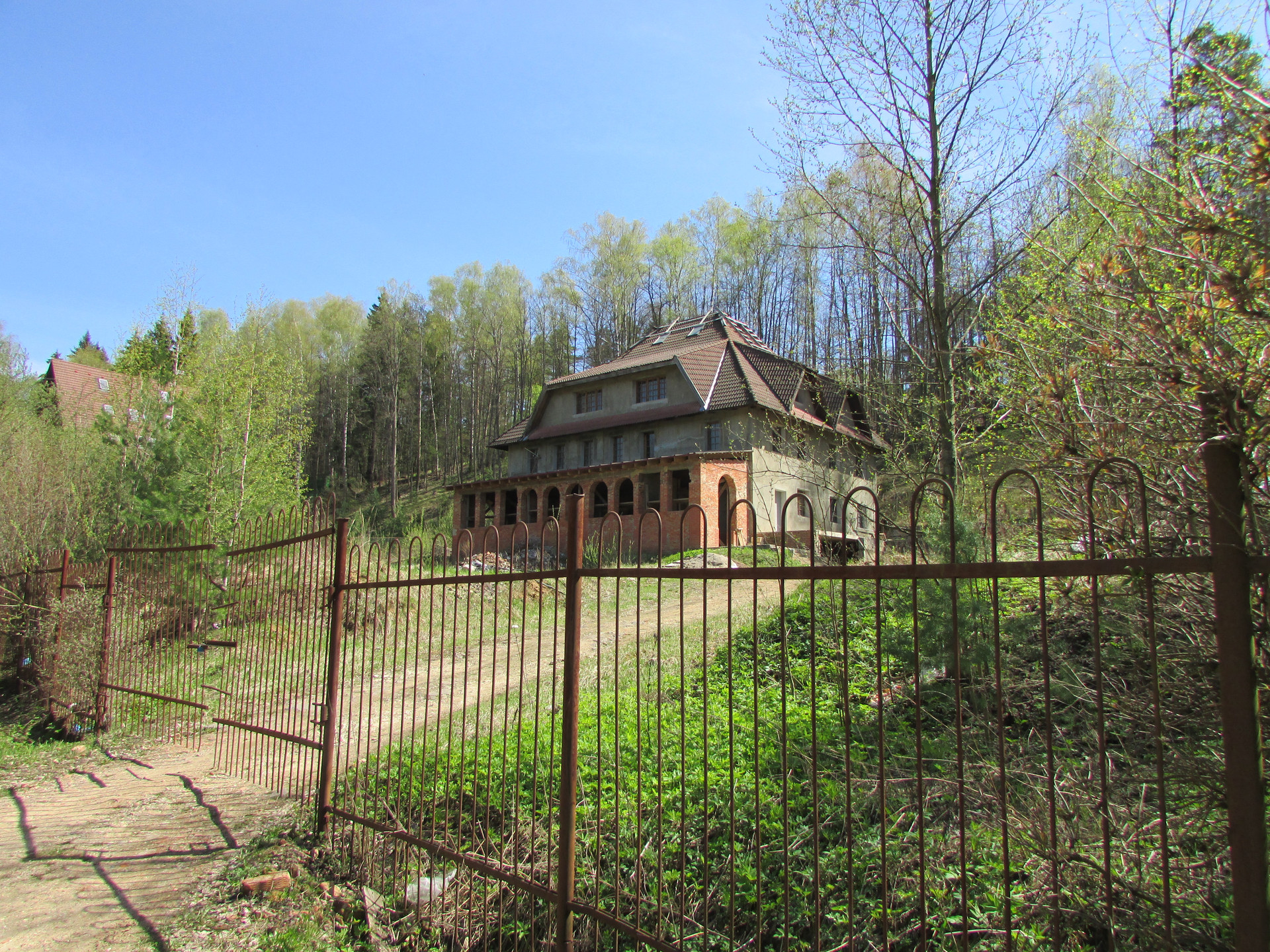 Капитальный загородный дом для постоянного проживания расположен на лесном участке 33 сотки, близ поселка Троицкий в Истринском районе Подмосковья. Дом надежно построен из кирпича на сборном ж/б фундаменте, имеет лифт из цокольного этажа, железобетонные плиты перекрытия, кровлю из натуральной черепицы. В дом заведены коммуникации: газовое отопление, электроэнергия 30 кВт, вода из скважины, автономная канализация. Все подготовлено для отделки и постоянного проживания. Обособленное место с отдельным заездом для пяти лесных участков с построенными домами. Красивейшие виды на подмосковный пейзаж. Река Истра. Ключевая вода. Церковь. Дачи Большого Театра. ДНТ создано по указанию Сталина ещё до Великой Отечественной Войны как образцовый посёлок советских артистов.