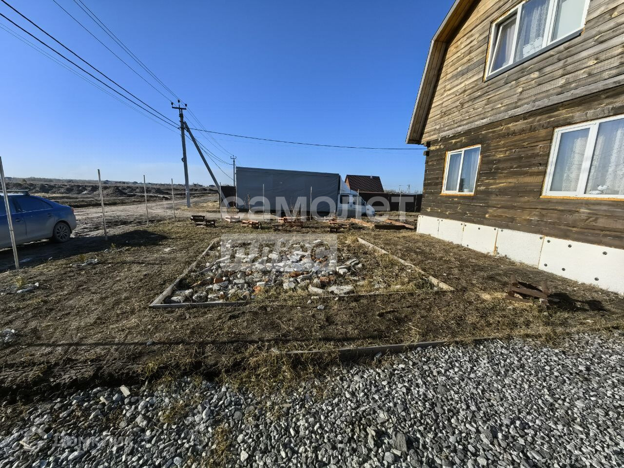 По периметру участка стоят столбы для забора.