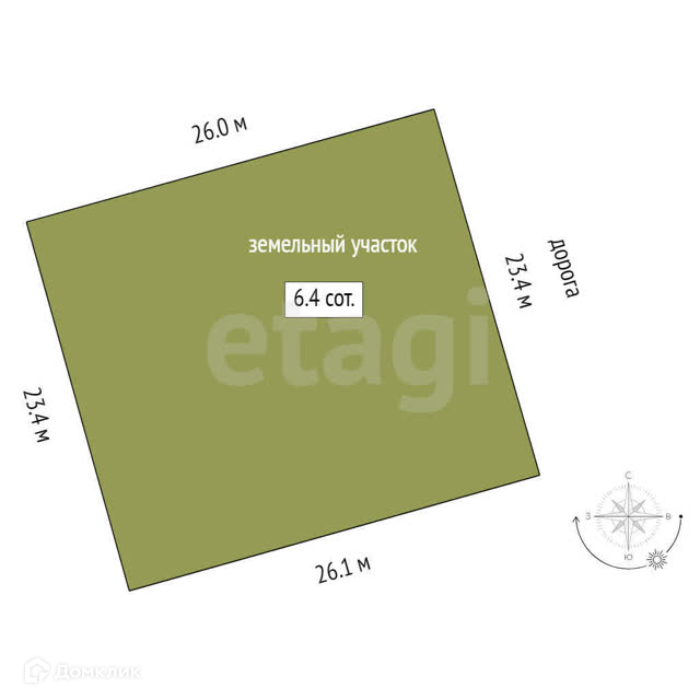 Площадь участка 6.4 сот.