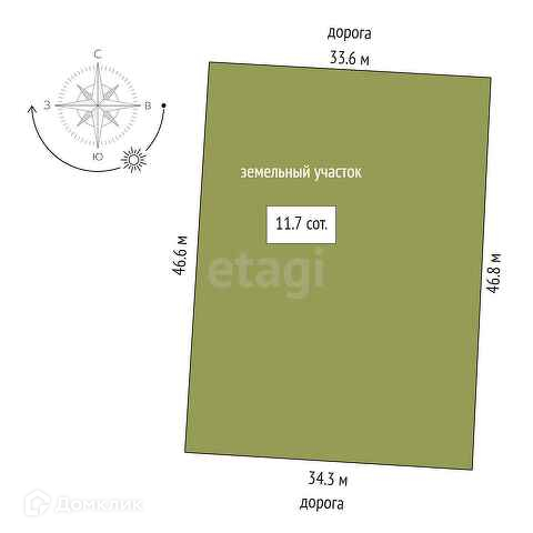 Площадь участка 11.7 сот.