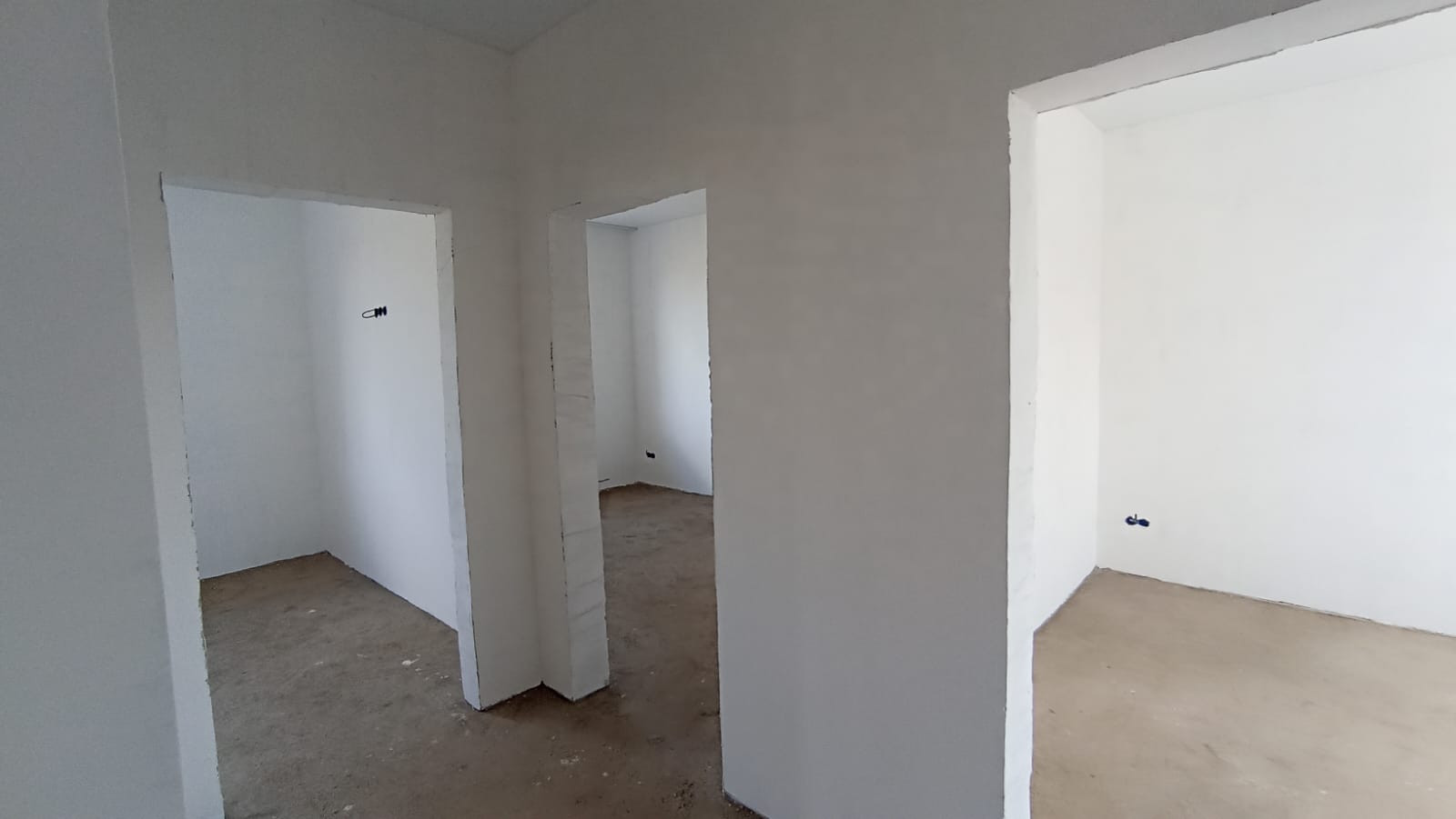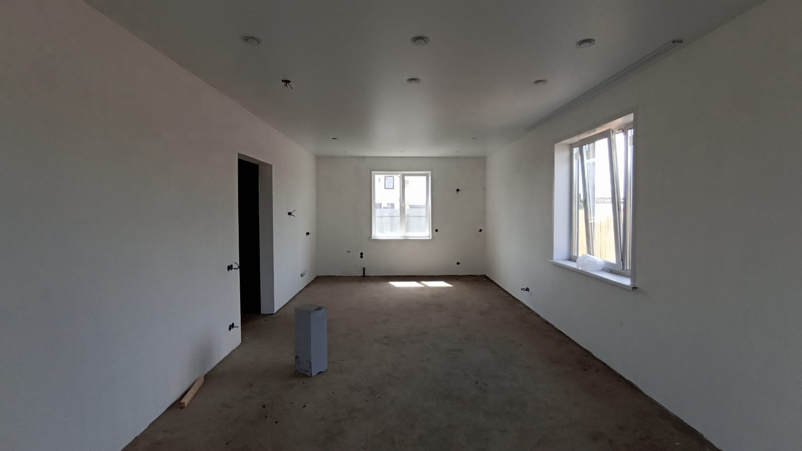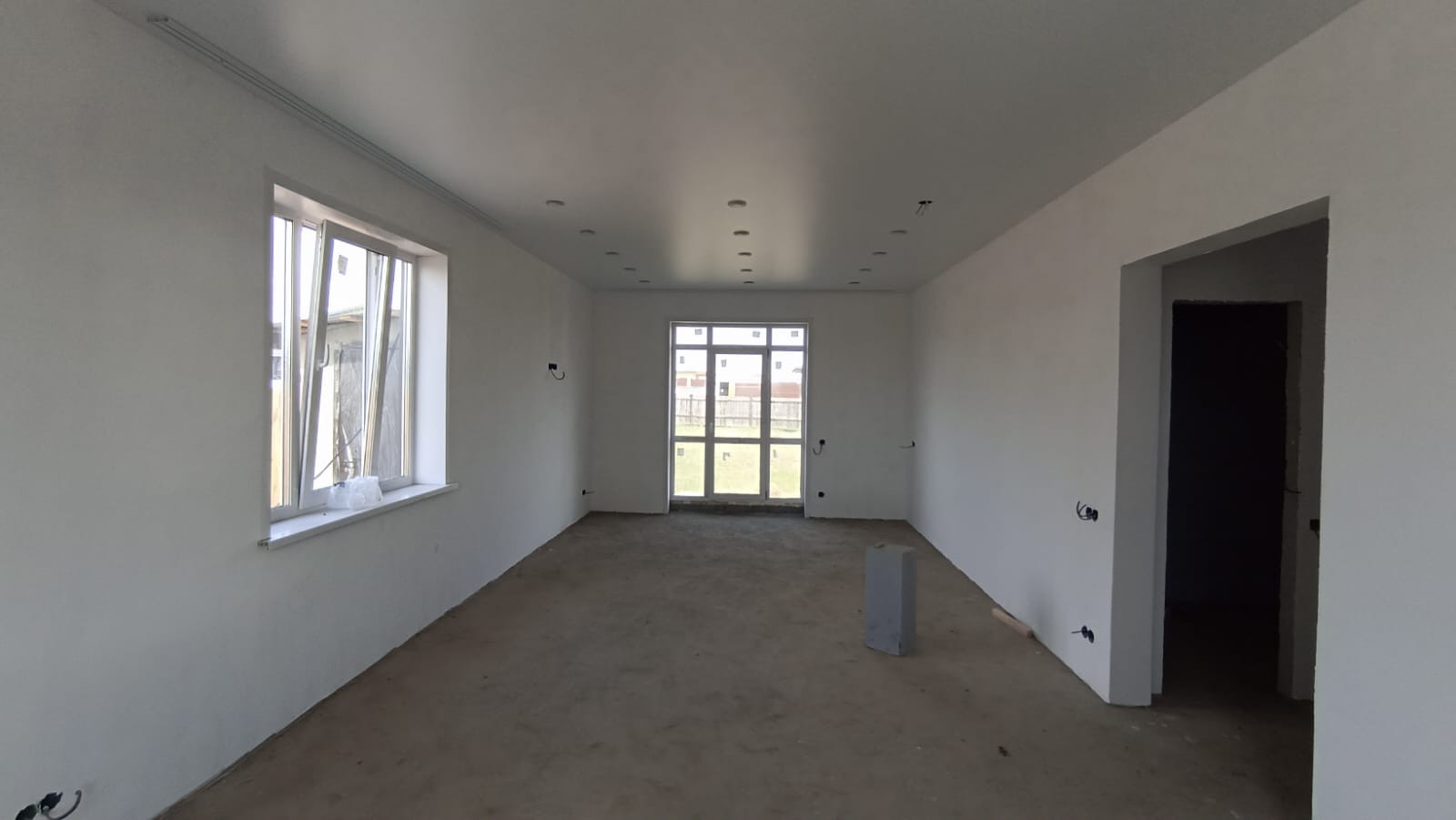 Внутренняя отделка - получистовая: пол бетонный ровный под финишное покрытие, стены отштукатурены и отшпаклеваны - под финишное покрытие. Потолки - натяжные.