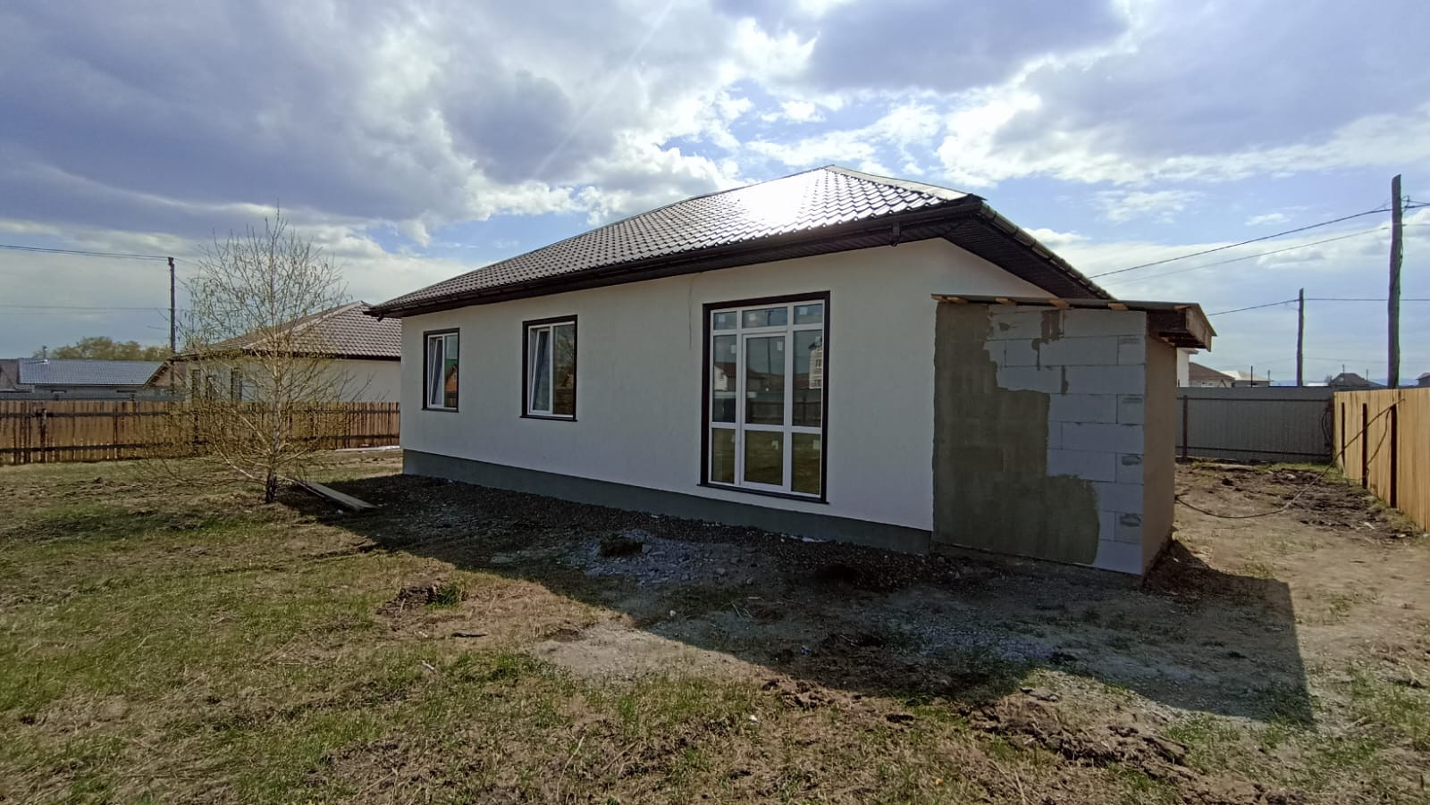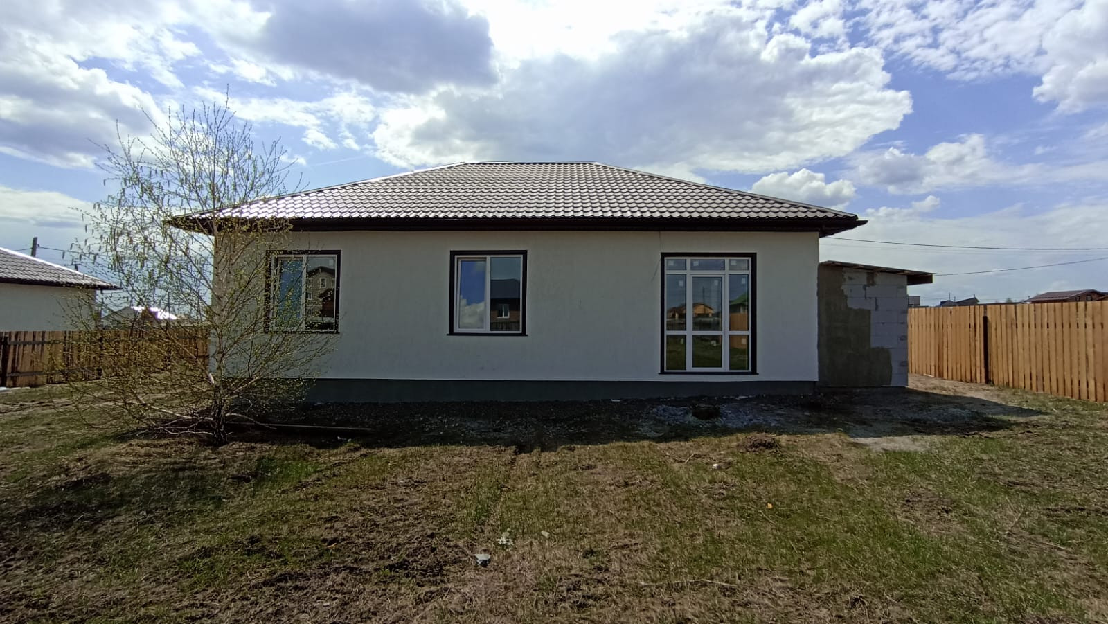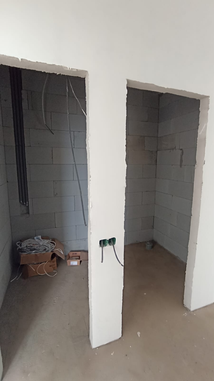Внутренняя отделка - получистовая: пол бетонный ровный под финишное покрытие, стены отштукатурены и отшпаклеваны - под финишное покрытие. Потолки - натяжные.