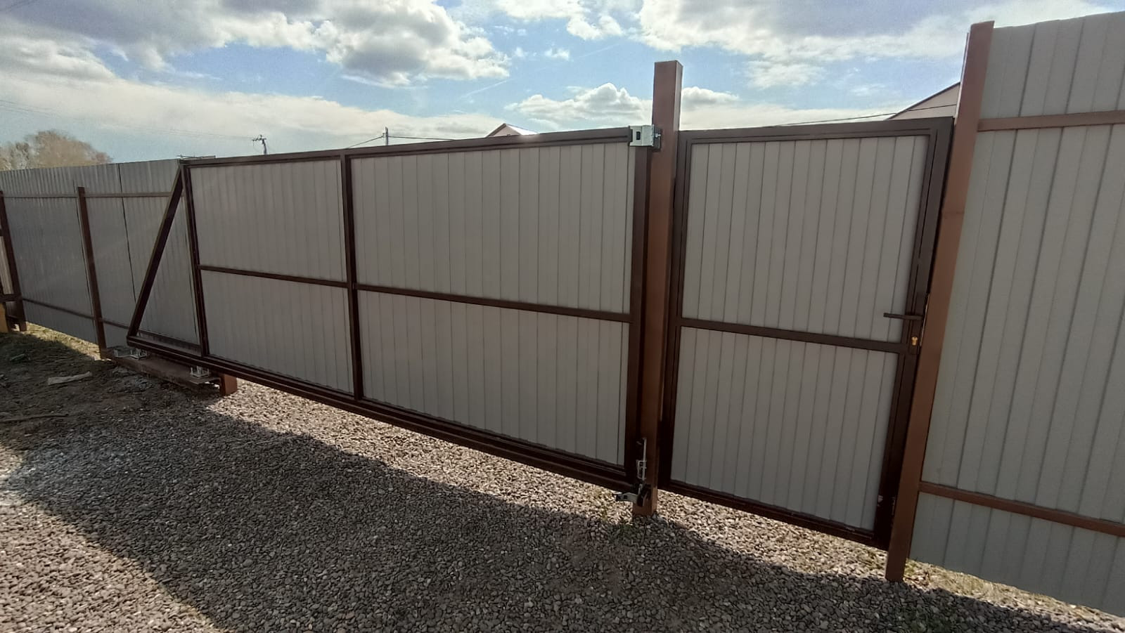 Земельный участок 10 соток, прямоугольный ровный, забор, калитка, откатные ворота.