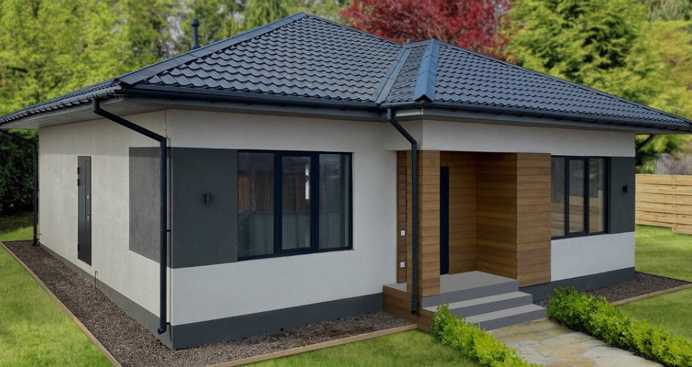 Дом из газобетона, утеплен и отштукатурен декоративной штукатуркой+декоративная отделка деревом,на ленточном фундаменте+плита.
