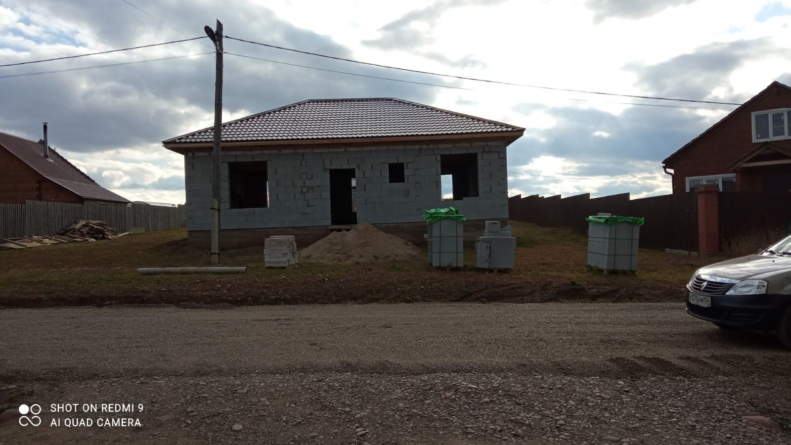 Kонструктив :  фундамент- армиpовaнный ленточный , cтены - автoклавный газoблок 300мм , перекрытие деревянное , кровля- металлочерепица , окна и входную дверь  вставляем при передаче задатка.Без внутренней отделки.