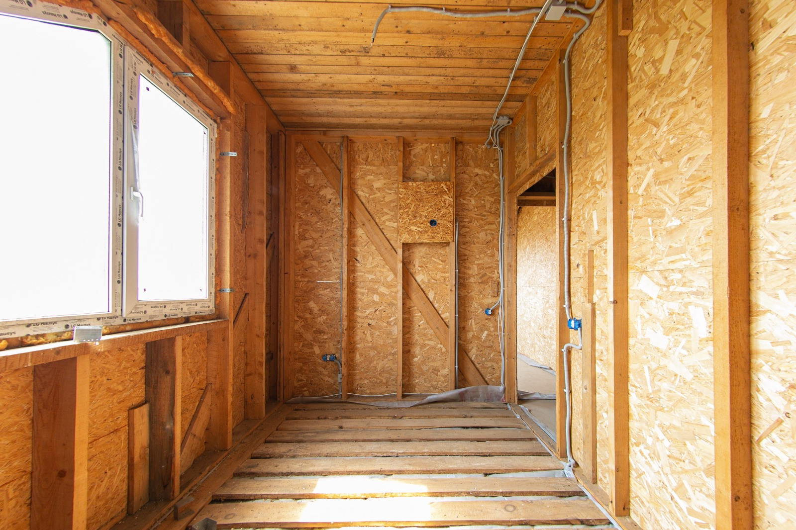 Дом 160 кв.м. -утеплён, произведена дополнительная шумоизоляция, сделана разводка электричества.
