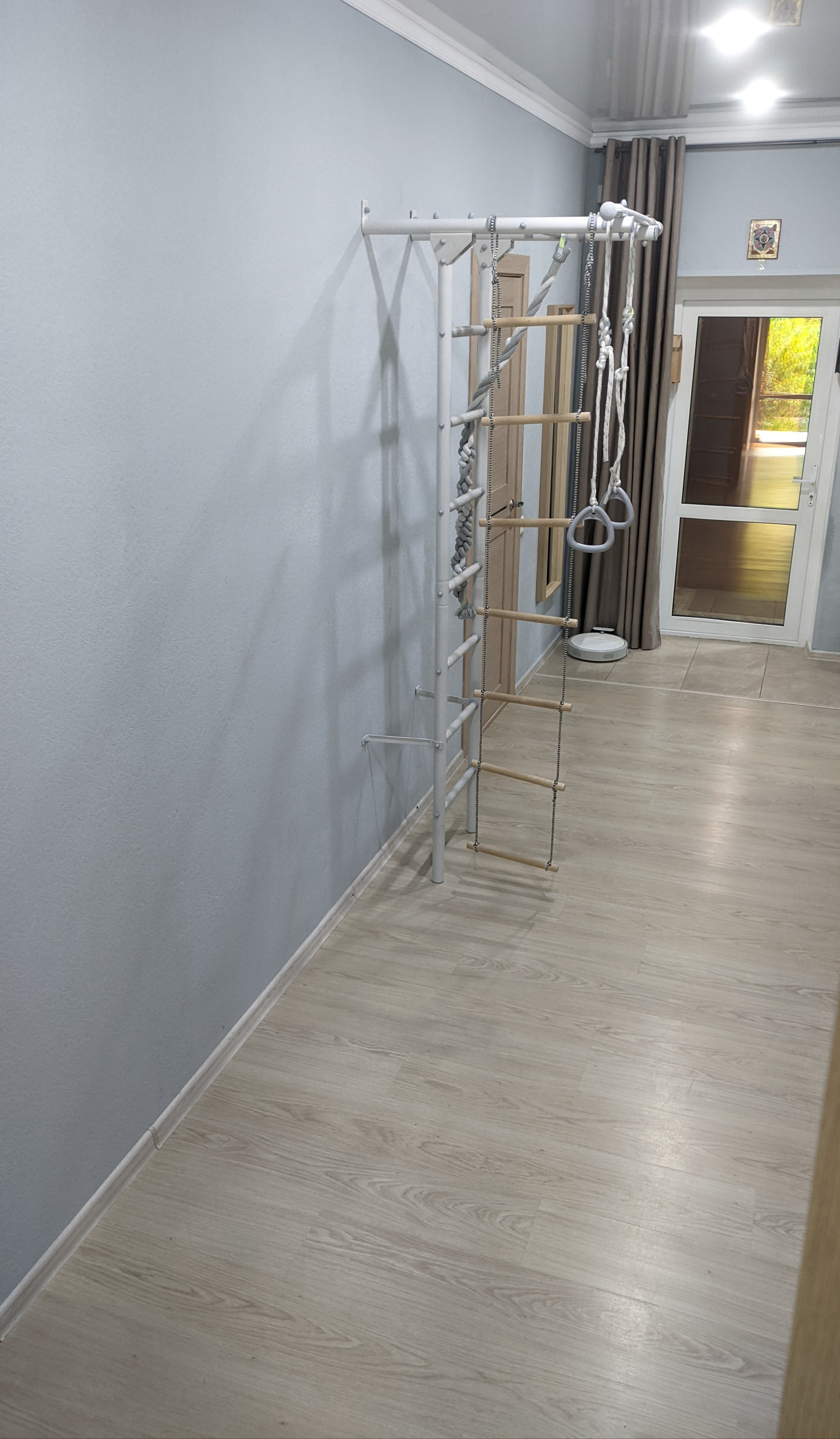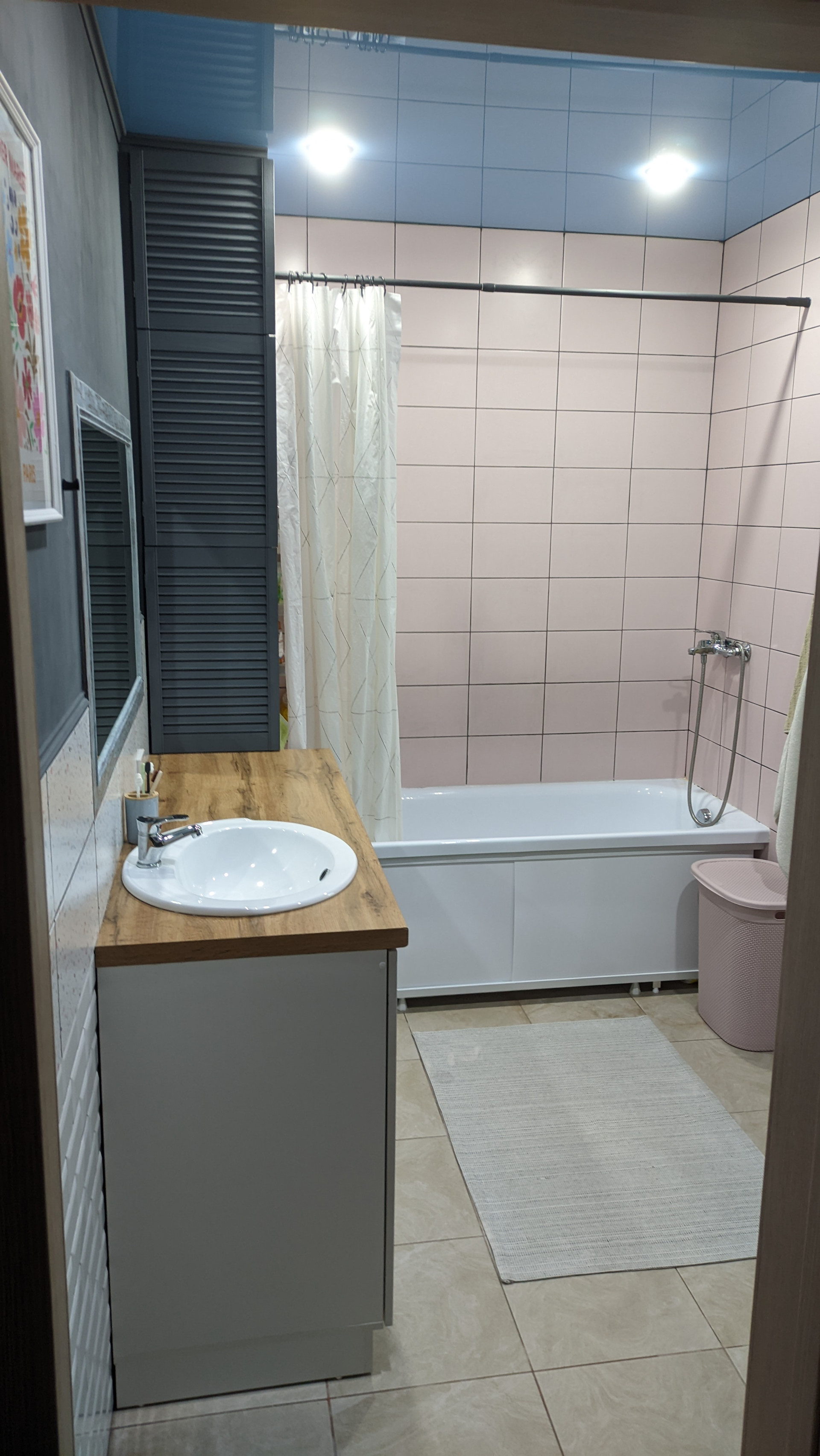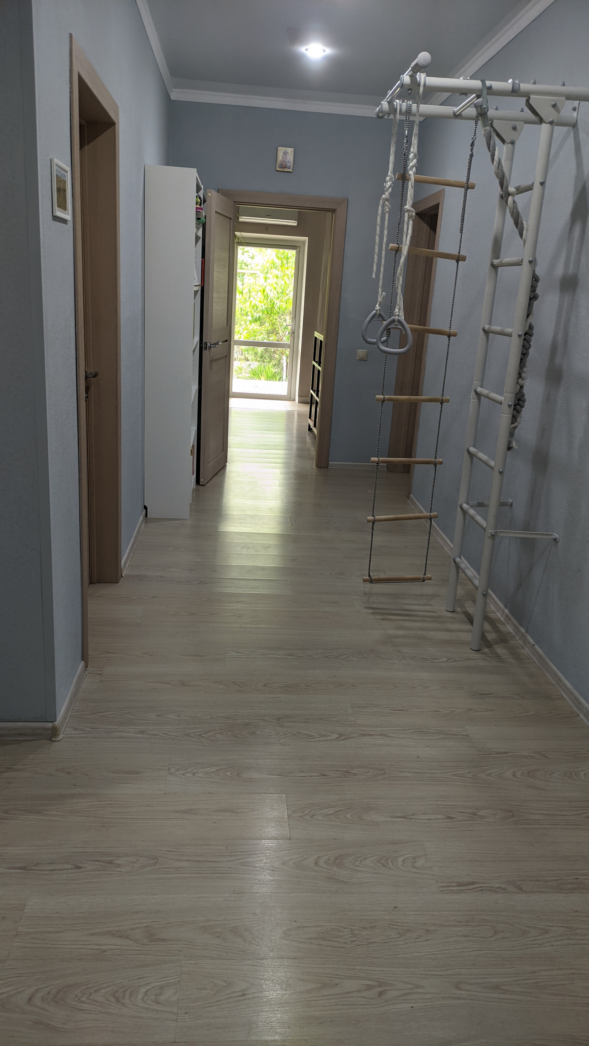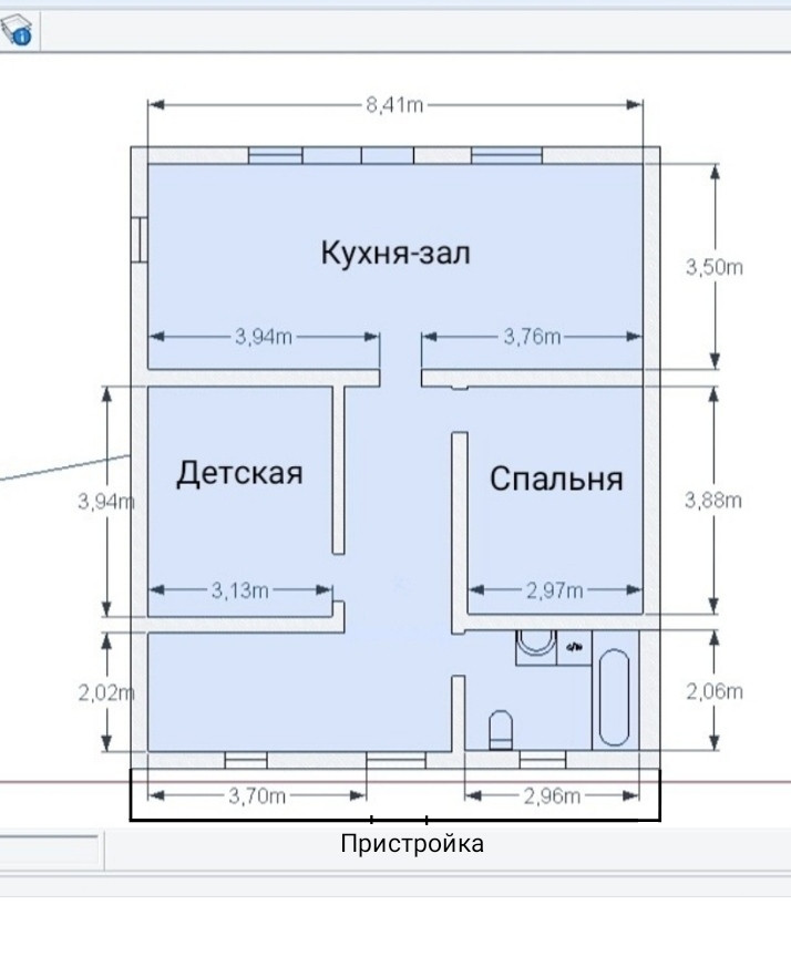 2 отдельные спальни, кухня-зал с отдельным выходом во двор, совмещенный большой санузел с полноценной ванной (бойлер), помещение под гардеробную или кабинет/небольшую комнату, очень широкий коридор (встают шкафы). Простая и вместительная кухня.