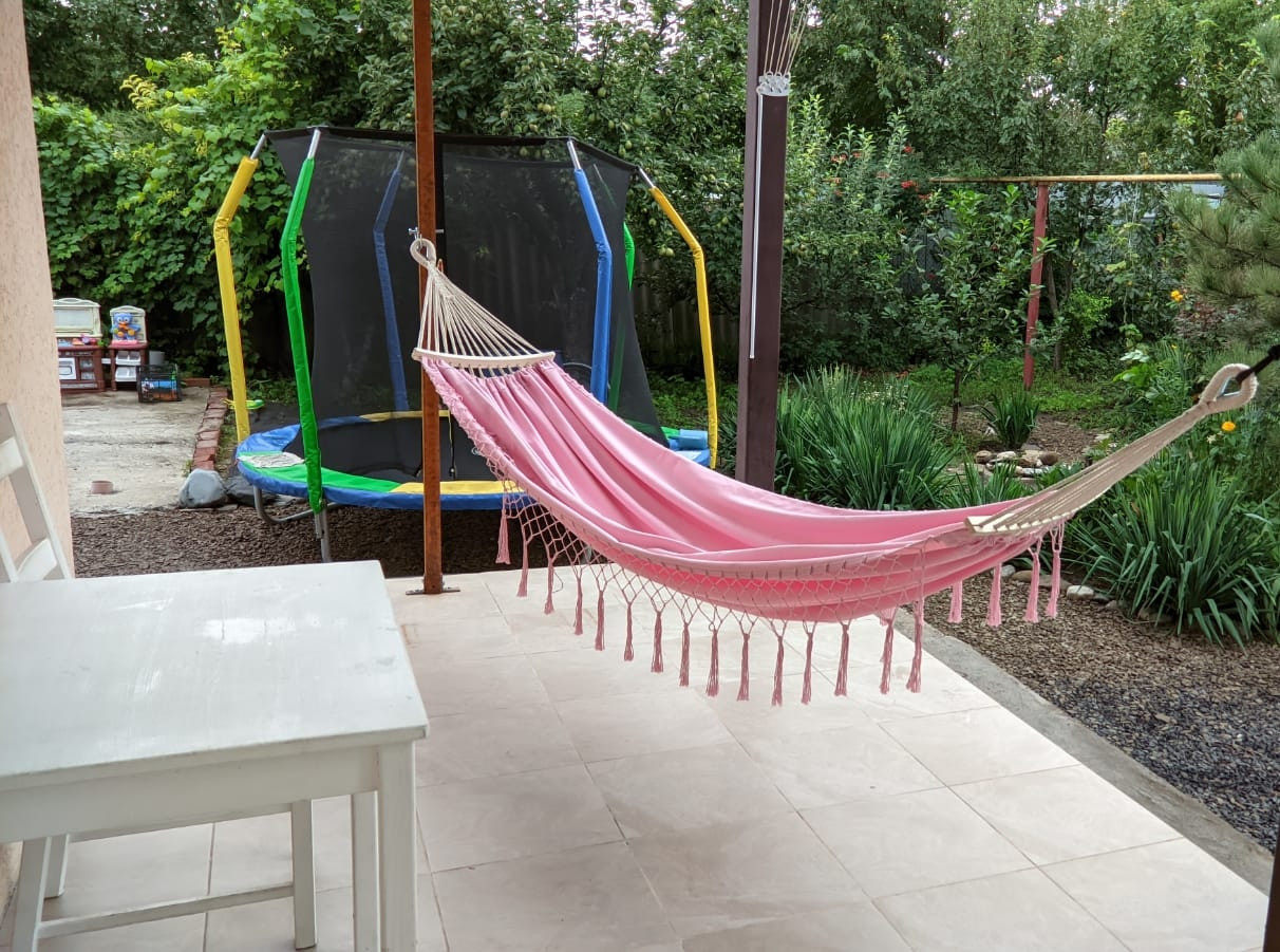 Пристройка при входе 10м² (большое место для хранения), открытая веранда во дворе для отдыха и спорта.