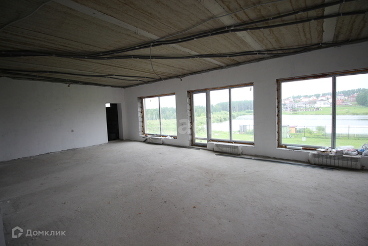 Большие панорамные окна гостиной первого этажа выходят на живописное озеро в самой широкой его части, в котором водится рыба и имеется возможность искупаться в жаркий летний день – дом находится в 80 метрах от воды.