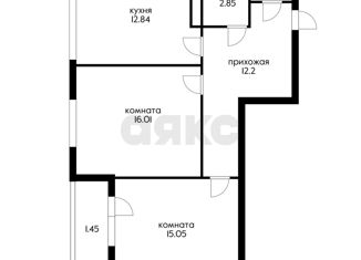 Общая площадь: 53.8 м2