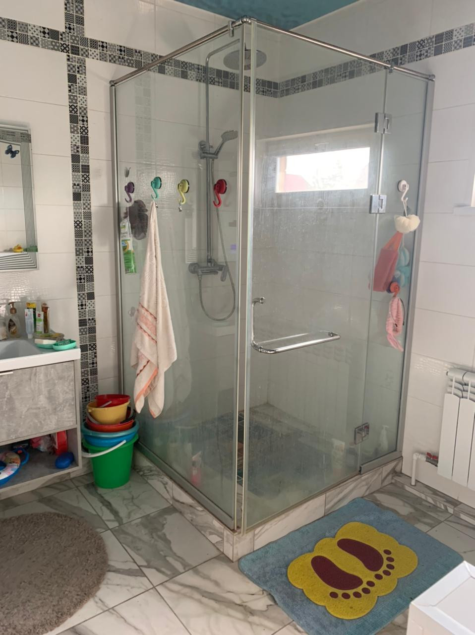 Первый этаж полыс подогреврм, выложены кафельной плиткой, залиты антифризом. В доме 2 санузла. "Хозяйский" установлена душевая кабина,джакузи, унитаз, мойдодыр. " Гостевой"- мойдодыр и унитаз. Лестница на 2 этаж изготовлена из лиственницы. В доме установлен котел Неделька КО-90 (утепленный корпус), во всем доме алюминевые радиаторы Royal thermo.Установлены окна ПВХ трех камерные. Электричество 3 фазы 220 и 380 В. Второй этаж полы -ламинат.Скважина 15 метров.