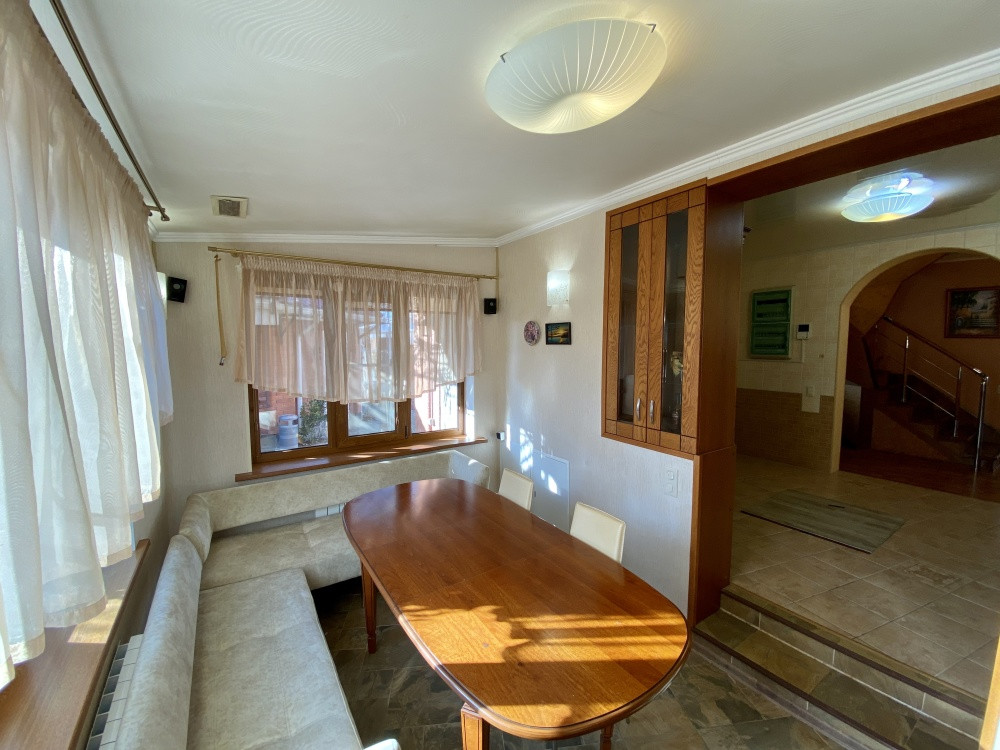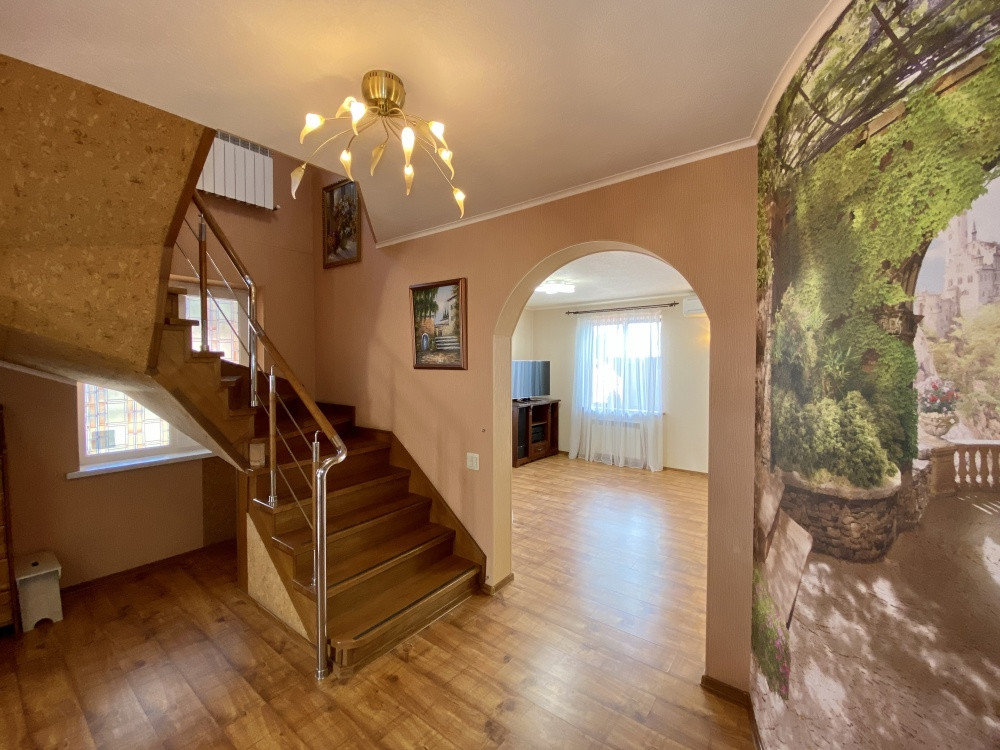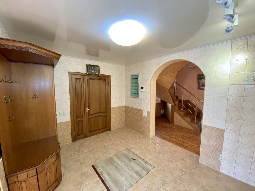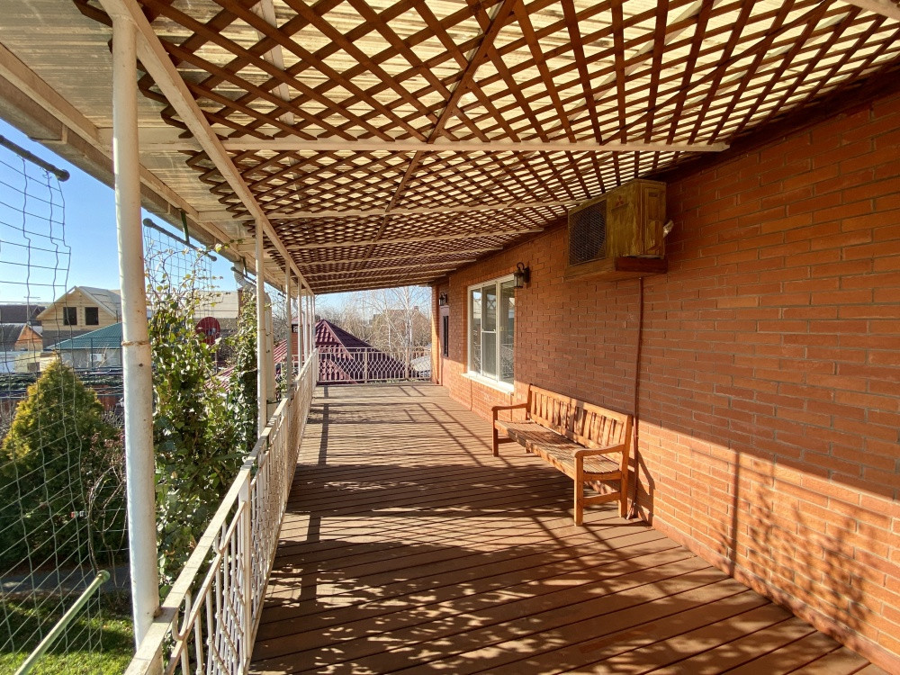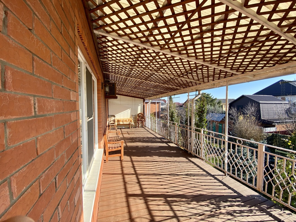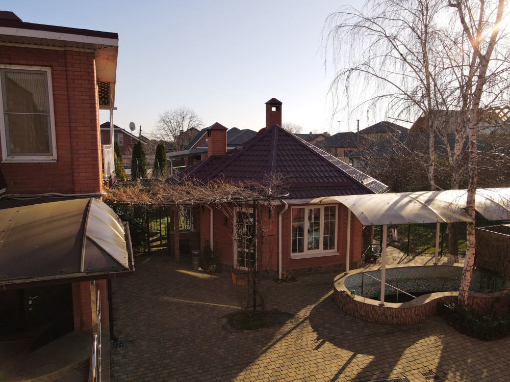 Продам дом 200/ 61/ 20, пгт. Яблоновский, ДНТ "Зори Кубани", 2-х эт.кирп. Дом с террасой и двумя подвальными помещениями. Общая площадь 200 кв.м. площадь комнат 25+10+15+11 кв.м., площадь участка 17 соток. На первом этаже кухня, зал с мраморным камином (дровяной), декорирован кованым обрамлением, заказным термостойким стеклом. На втором этаже расположены 3 спальни, все оборудованы сплит системами. Есть игровая комната. Большая спальня имеет кабинет на два рабочих места и выход на террасу. Так же на участке гостевая летняя кухня (30 м2). Отдельное строение в авторском дизайне (дерево ручной работы). Электрика NUM, свой коллектор, инверторная сплит система. Оборудована внутри и снаружи звуковыми колонками с управлением, дискотечной светомузыкой. Холодильник, газовые варочная панель и духовка, каменная столешница. Дровяной камин с кованным декором. На территории: мангальная зона и обеденный стол. Дровница с вентилируемыми дверцами. Фруктовый сад с авто поливом. Бассейн с террасой. Чаша бассейна изготовлена из армированного бетона с теплоизоляцией стенок и дна утеплителем Penoplex (50 мм). Внутри бассейна пленка ПВХ (всегда мягкие стенки и дно бассейна). Бассейн для освещения оснащен двумя прожекторами. Пруд с карпами коя, с автоматической фильтрацией и подсветкой. Отдельное двухэтажное строение Первый этаж -гараж. На втором этаже располагаются комната отдыха, дровяная баня, душевая и туалет. Дом 2008 г.п.