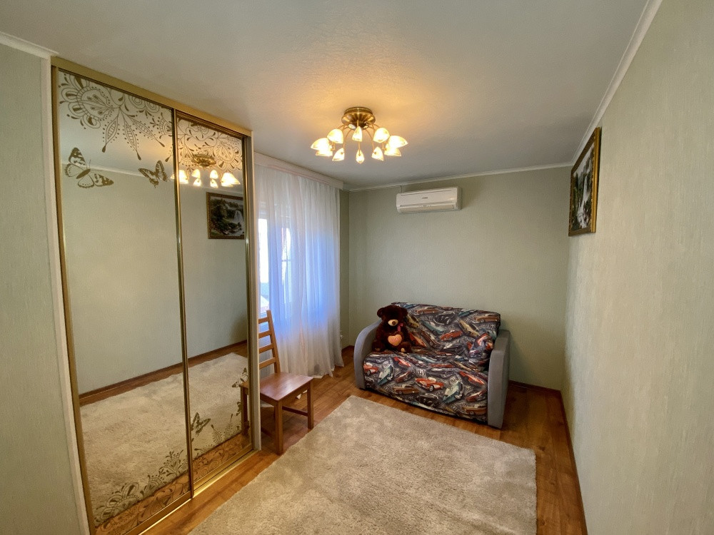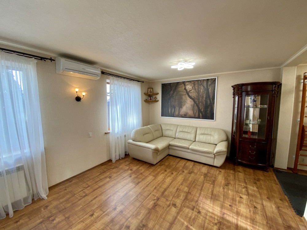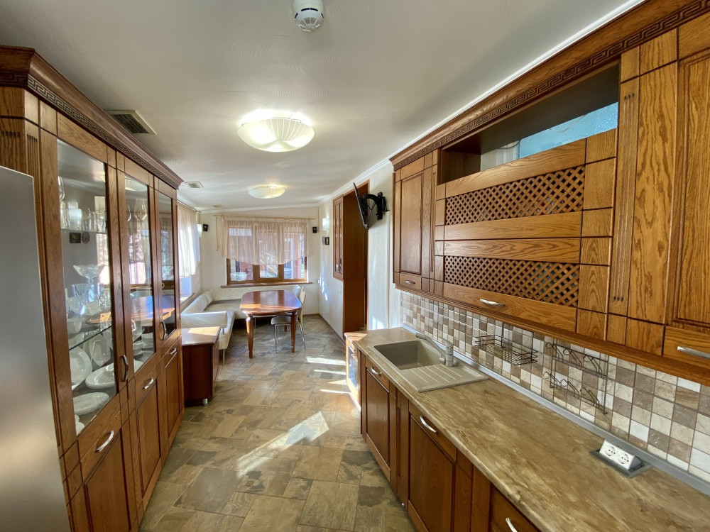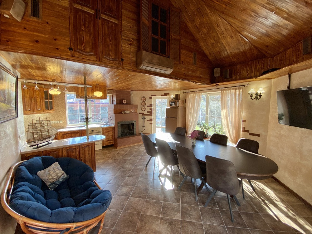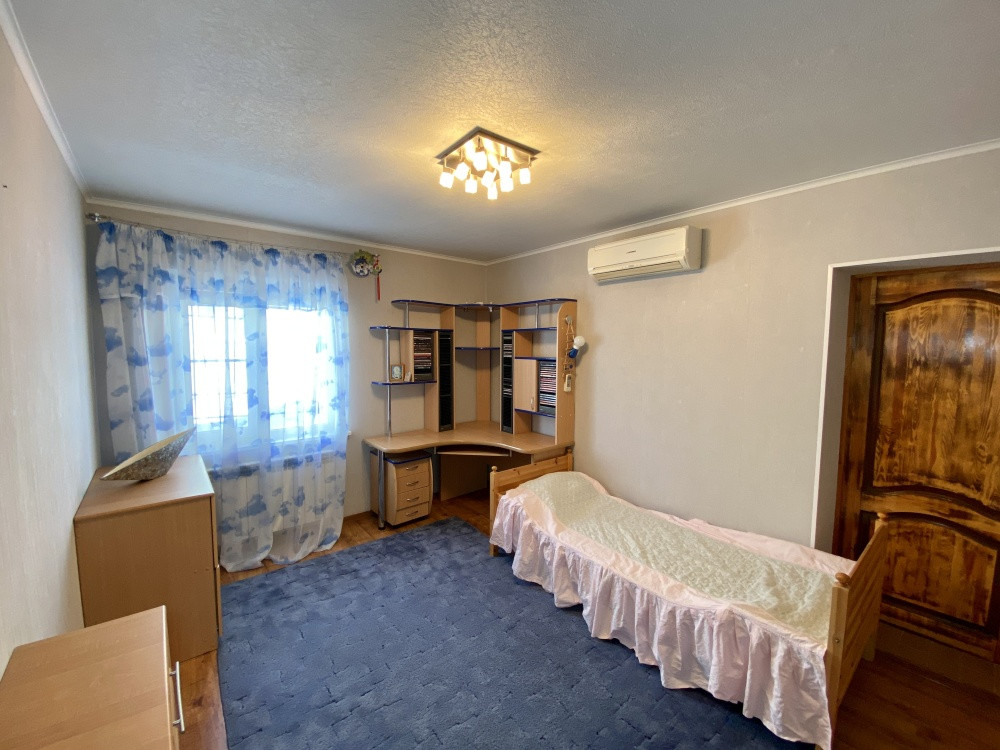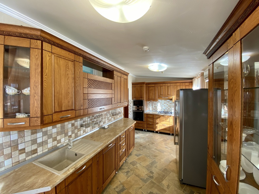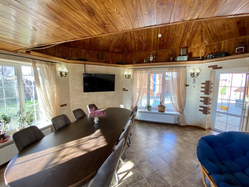Продам дом 200/ 61/ 20, пгт. Яблоновский, ДНТ "Зори Кубани", 2-х эт.кирп. Дом с террасой и двумя подвальными помещениями. Общая площадь 200 кв.м. площадь комнат 25+10+15+11 кв.м., площадь участка 17 соток. На первом этаже кухня, зал с мраморным камином (дровяной), декорирован кованым обрамлением, заказным термостойким стеклом. На втором этаже расположены 3 спальни, все оборудованы сплит системами. Есть игровая комната. Большая спальня имеет кабинет на два рабочих места и выход на террасу. Так же на участке гостевая летняя кухня (30 м2). Отдельное строение в авторском дизайне (дерево ручной работы). Электрика NUM, свой коллектор, инверторная сплит система. Оборудована внутри и снаружи звуковыми колонками с управлением, дискотечной светомузыкой. Холодильник, газовые варочная панель и духовка, каменная столешница. Дровяной камин с кованным декором. На территории: мангальная зона и обеденный стол. Дровница с вентилируемыми дверцами. Фруктовый сад с авто поливом. Бассейн с террасой. Чаша бассейна изготовлена из армированного бетона с теплоизоляцией стенок и дна утеплителем Penoplex (50 мм). Внутри бассейна пленка ПВХ (всегда мягкие стенки и дно бассейна). Бассейн для освещения оснащен двумя прожекторами. Пруд с карпами коя, с автоматической фильтрацией и подсветкой. Отдельное двухэтажное строение Первый этаж -гараж. На втором этаже располагаются комната отдыха, дровяная баня, душевая и туалет. Дом 2008 г.п.