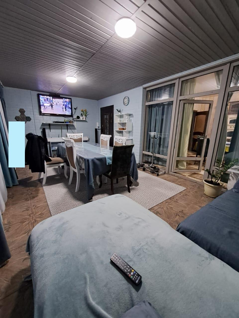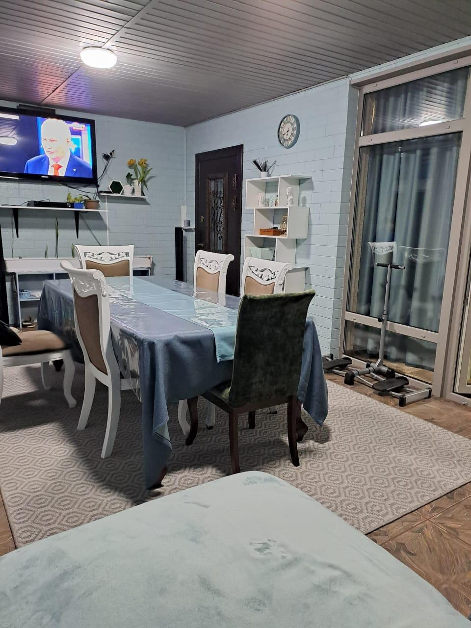 Гостиная на сегодняшний день как на последних фото, в светло-голубых тонах.