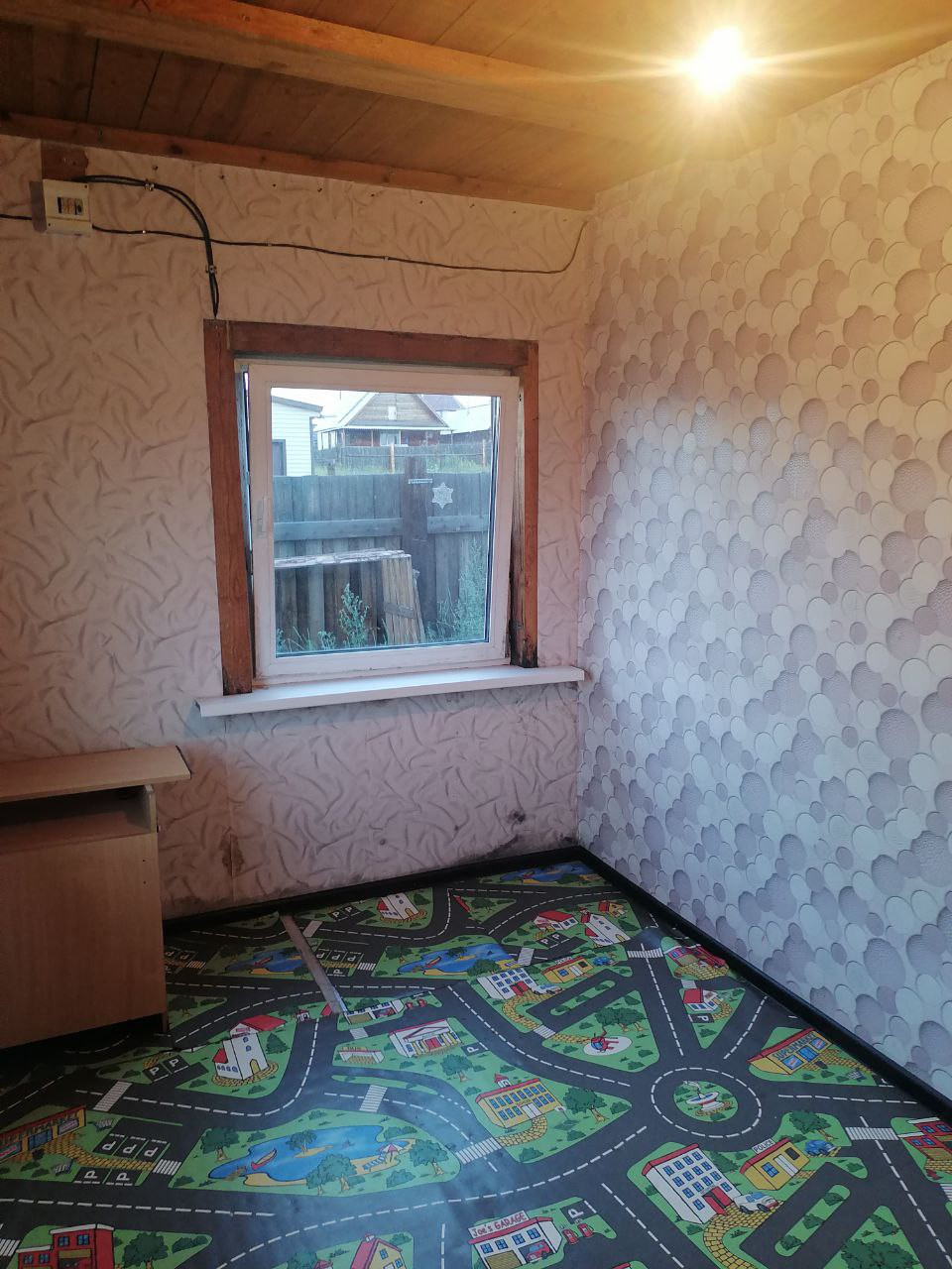 Дом был построен в 2011 году и полностью выполнен из бруса. Расстояние до города (п.Восточный) составляет 10 минут езды на автобусе. В доме установлена печь, которая обеспечивает тепло и комфорт в холодное время года. Печь была установлена 5 лет назад, поэтому зимой в доме всегда тепло.
