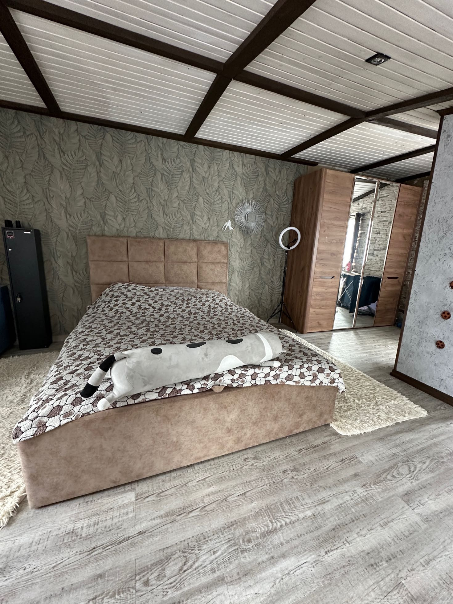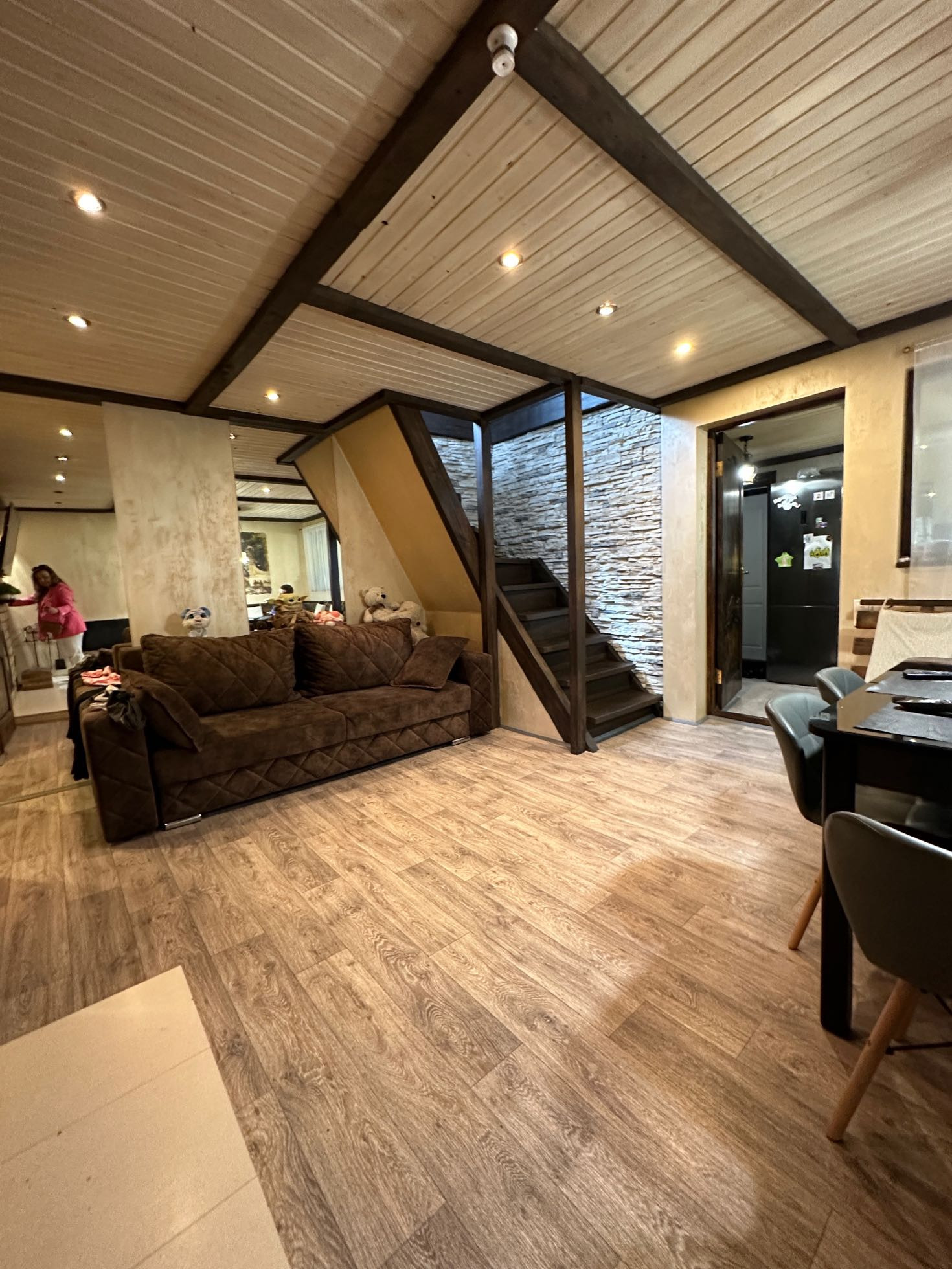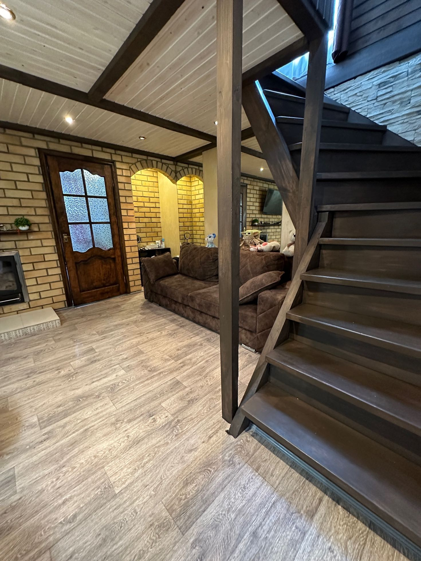 кухня, гостиная зона, на втором этаже большая спальня.