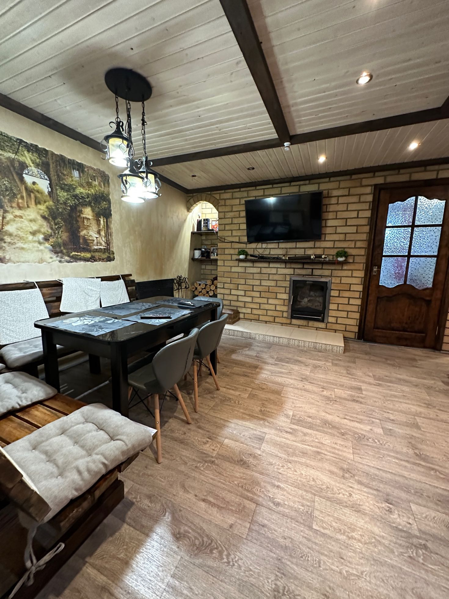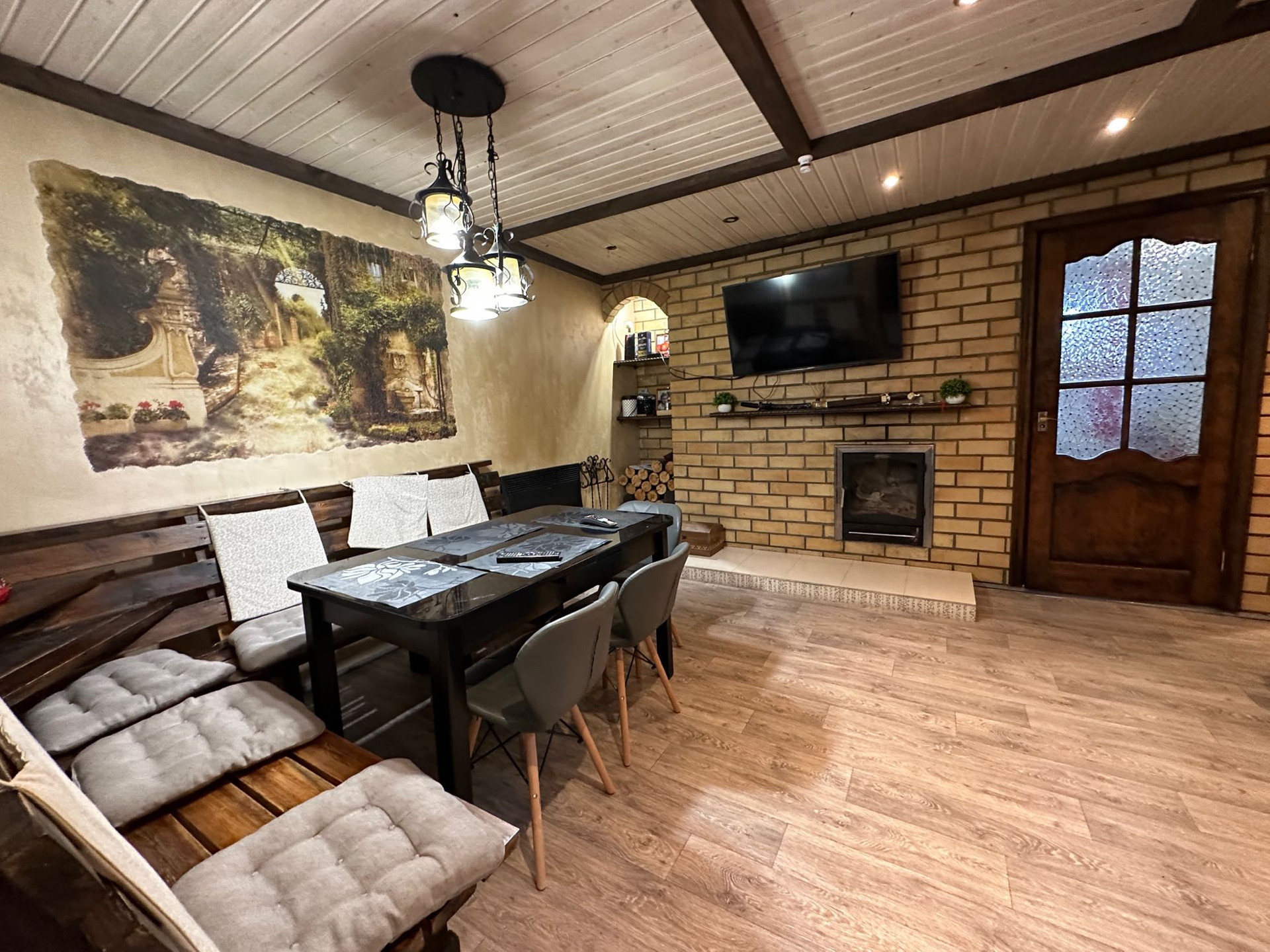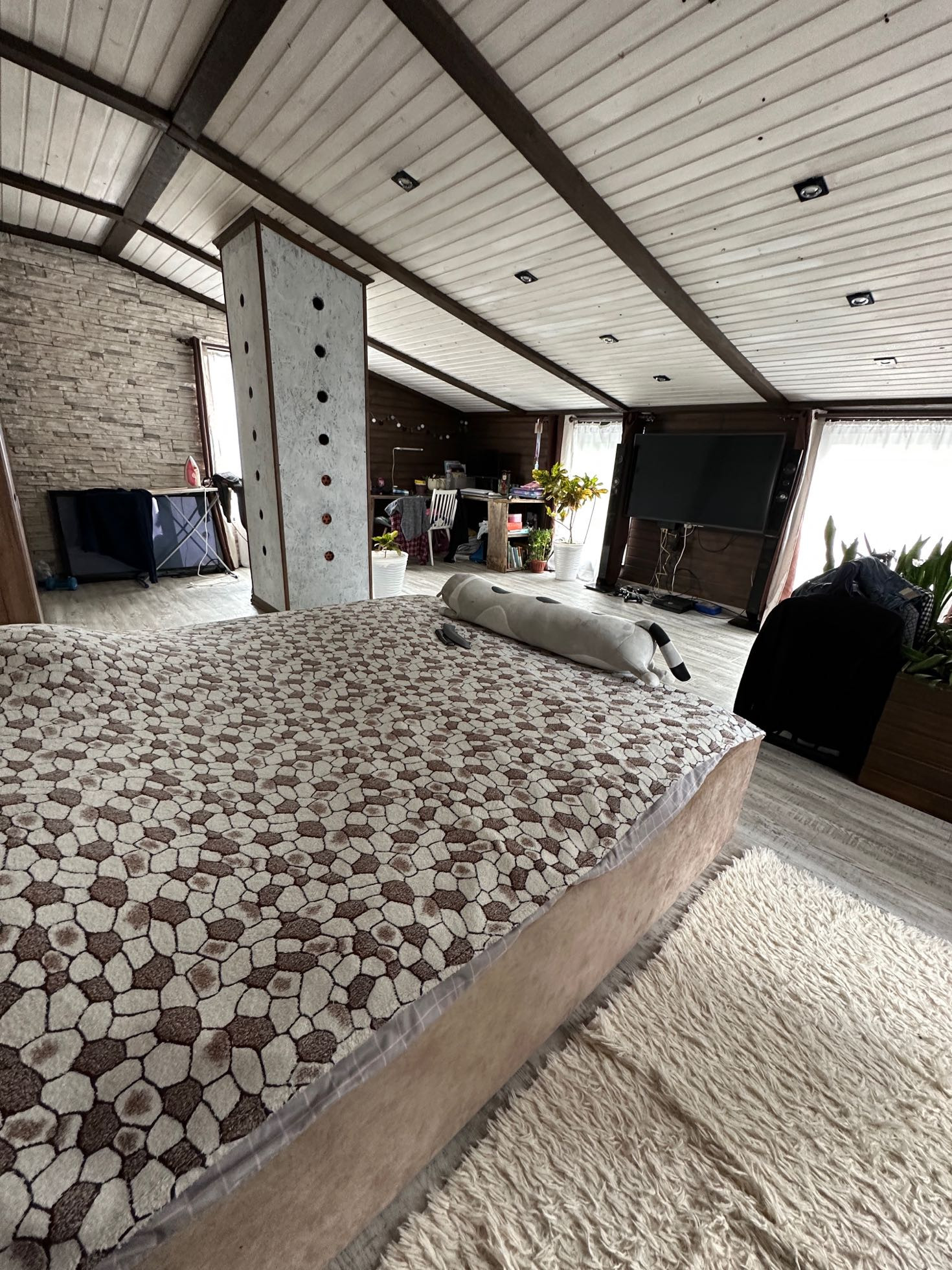кухня, гостиная зона, на втором этаже большая спальня.