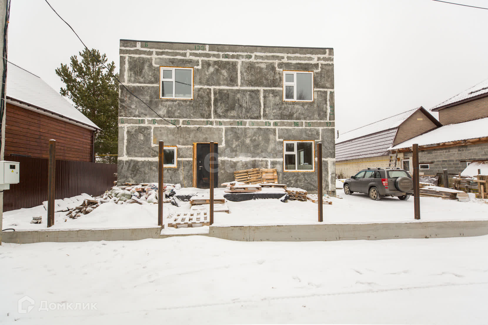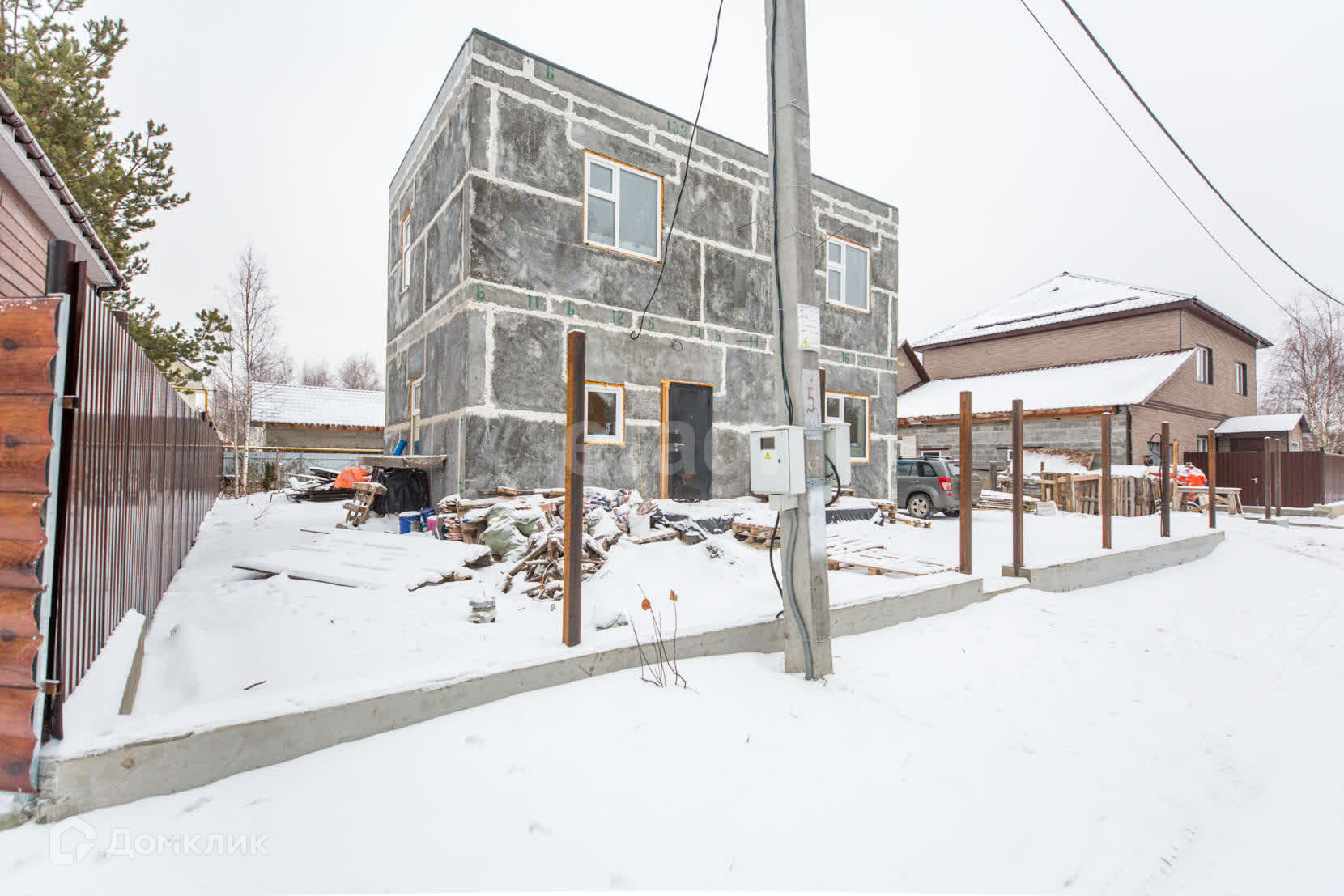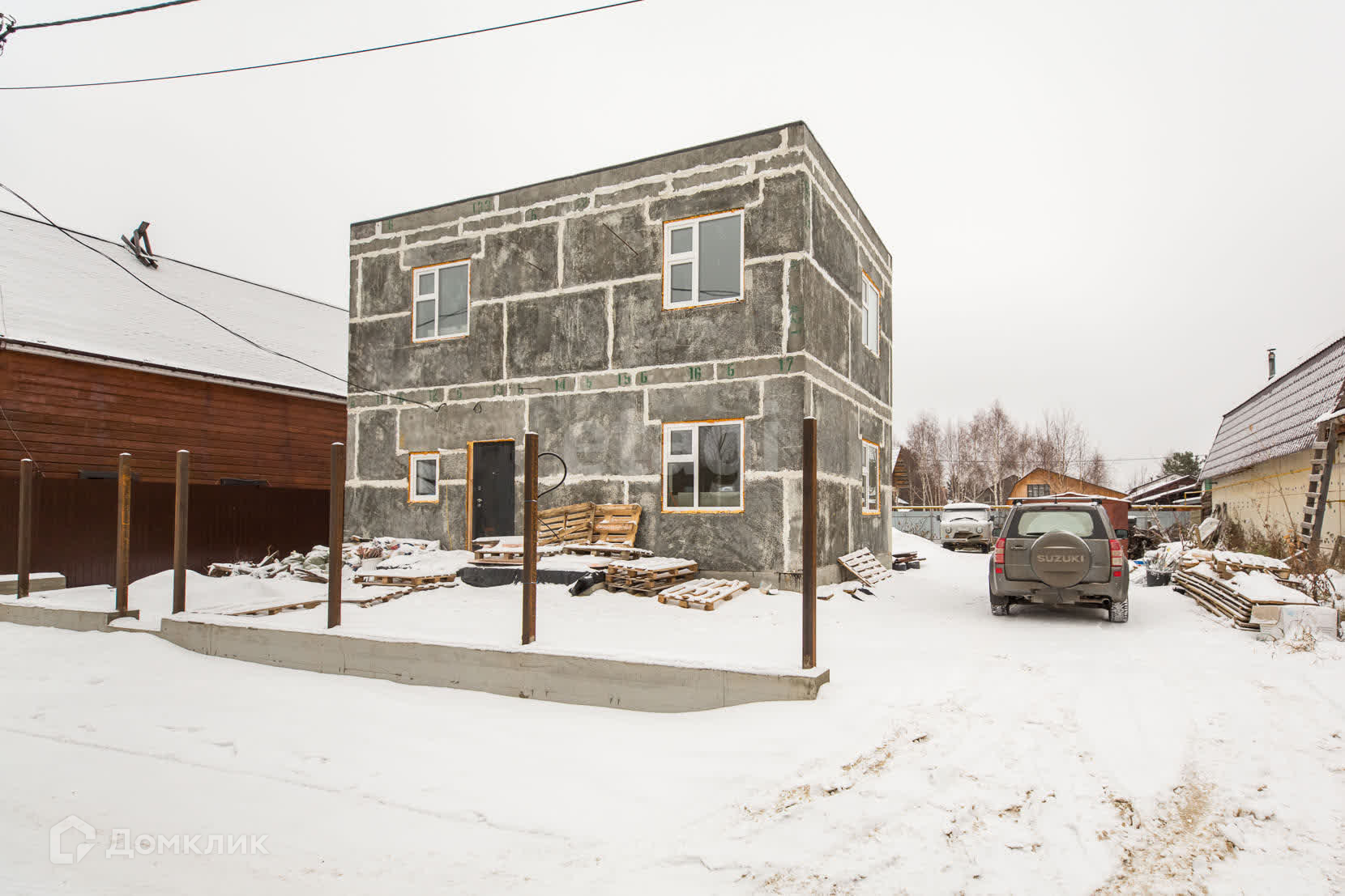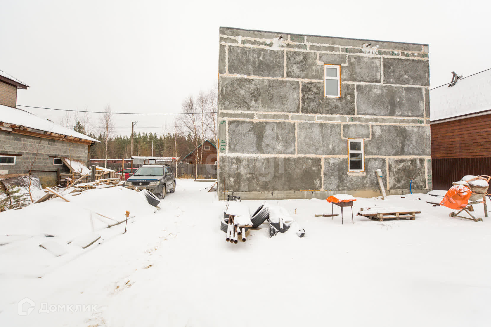 Материал стен полистеролбетон, с отдельной котельной, отопление разведено по всему дому ( котел есть газовый и электро), так же по всему первому этажу установлен теплый пол. Первый этаж практически готов к проживанию-остались не большие вложения.