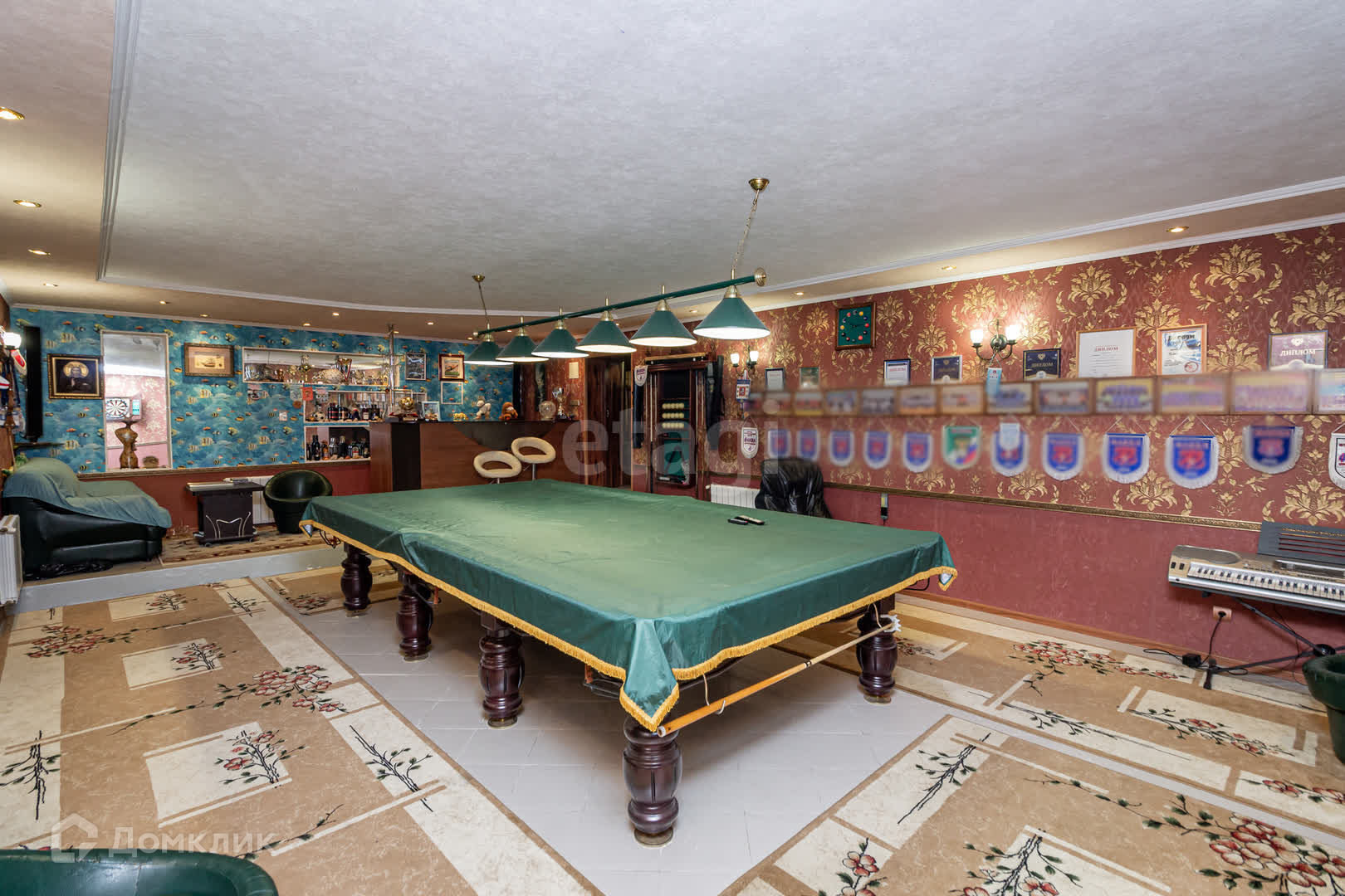 Шикарный бассейн, а также баня и банкетный зал со своим проектором. Бильярдная с баром и просторный тренажерный зал с панорамным окном. Капитальный забор с автоматическими воротами. Имеется своя собственная электростанция и биостанция.