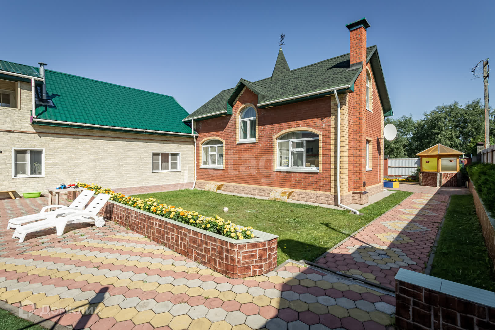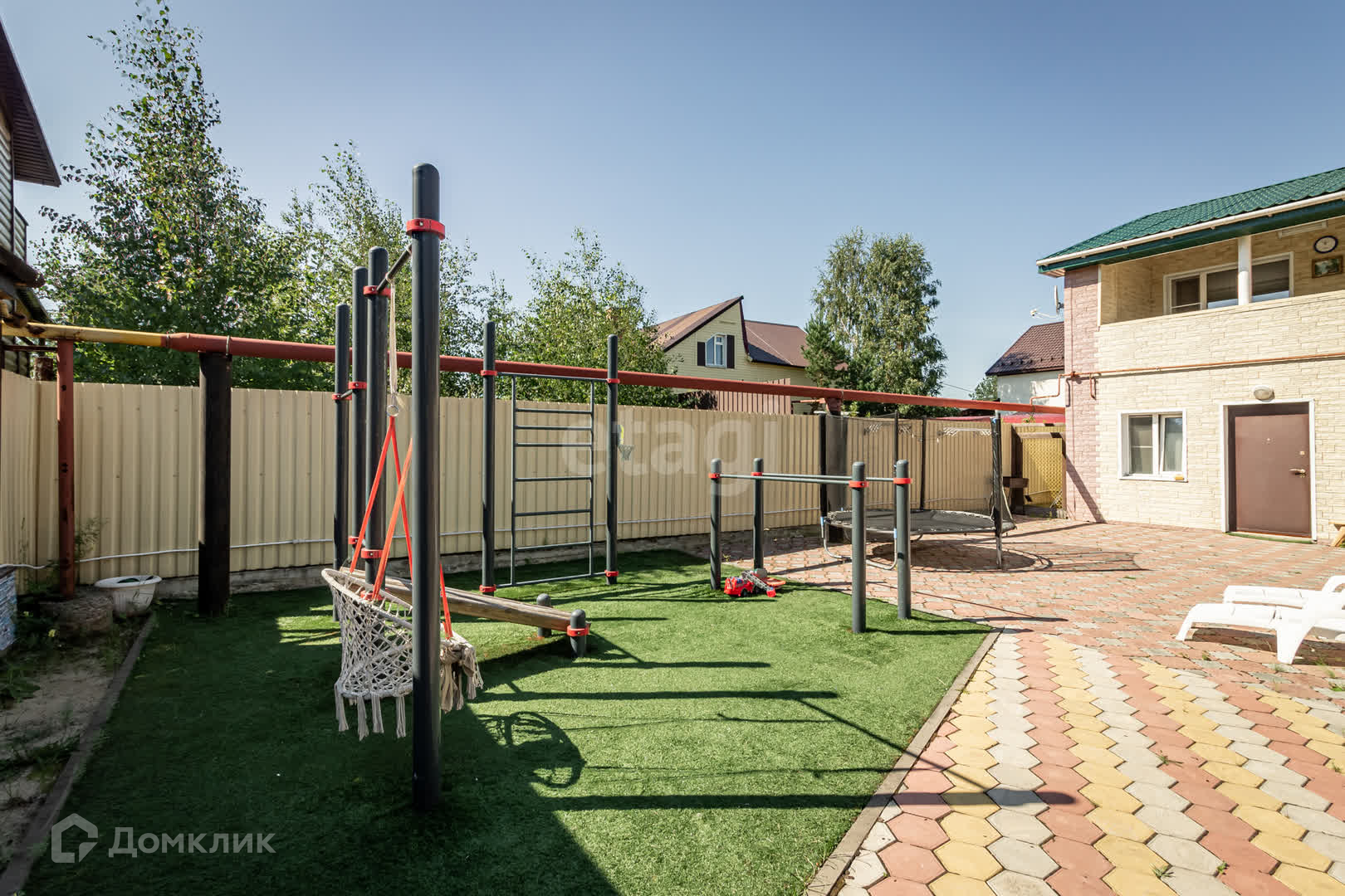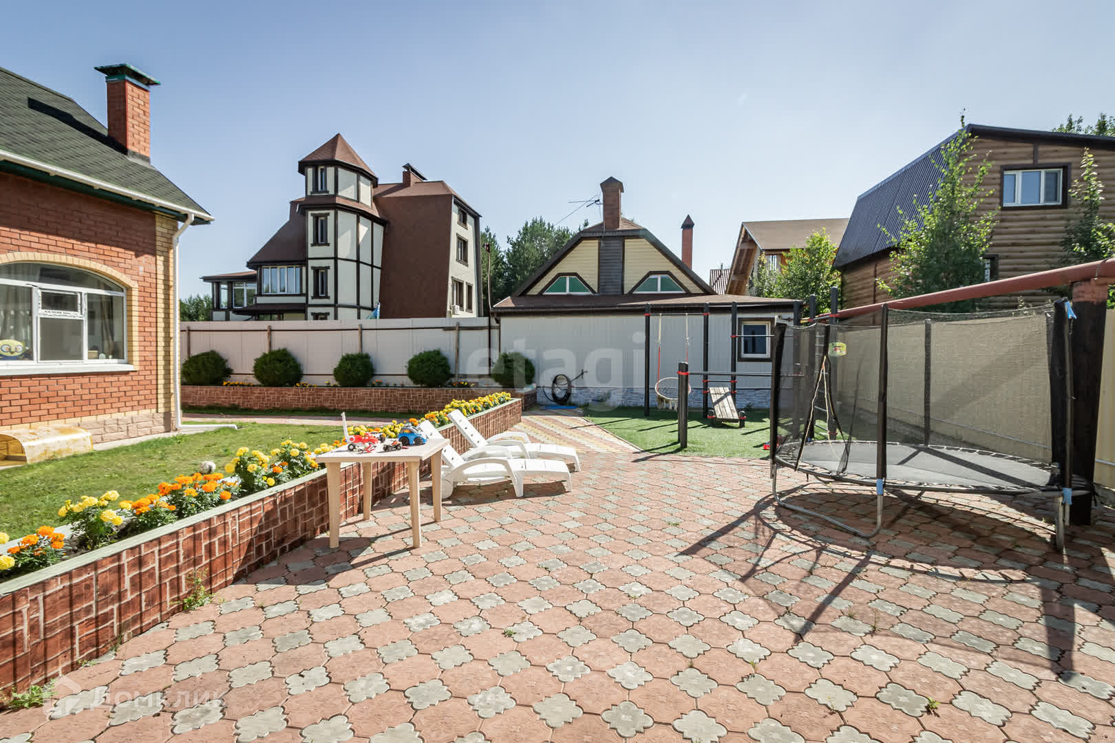 Участок с беседкой, зоной барбекю, теплицей, фонтаном, игровой площадкой и спортивным городком! Дом очень теплый и уютный. Рядом с домом находятся 2 магазина, детский сад, а школа находится в автобусной доступности.