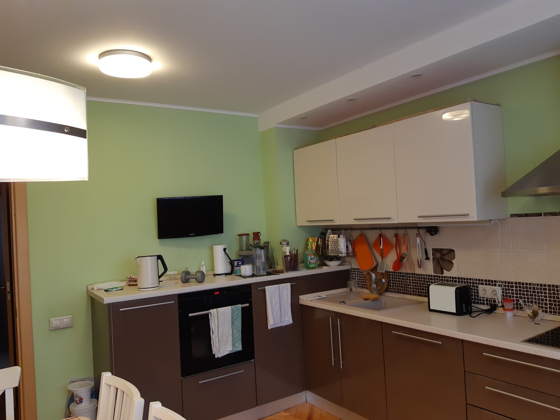 Состояние хорошее. Дом полностью готов для проживания. На полу ламинат, паркет. Подвесные потолки. Санузлы в кафеле. Кухонный гарнитур, варочная поверхность, вытяжка.