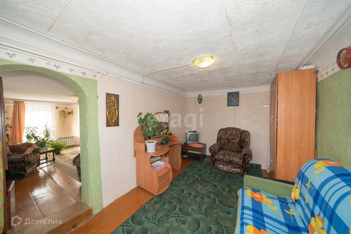 Дом рубленный из бревен, фундамент - бутовый ленточный, крыша - металлическая по деревянной облицовке. Общая площадь дома 97,0 кв метра, из них жилая 66,3 кв.м.
