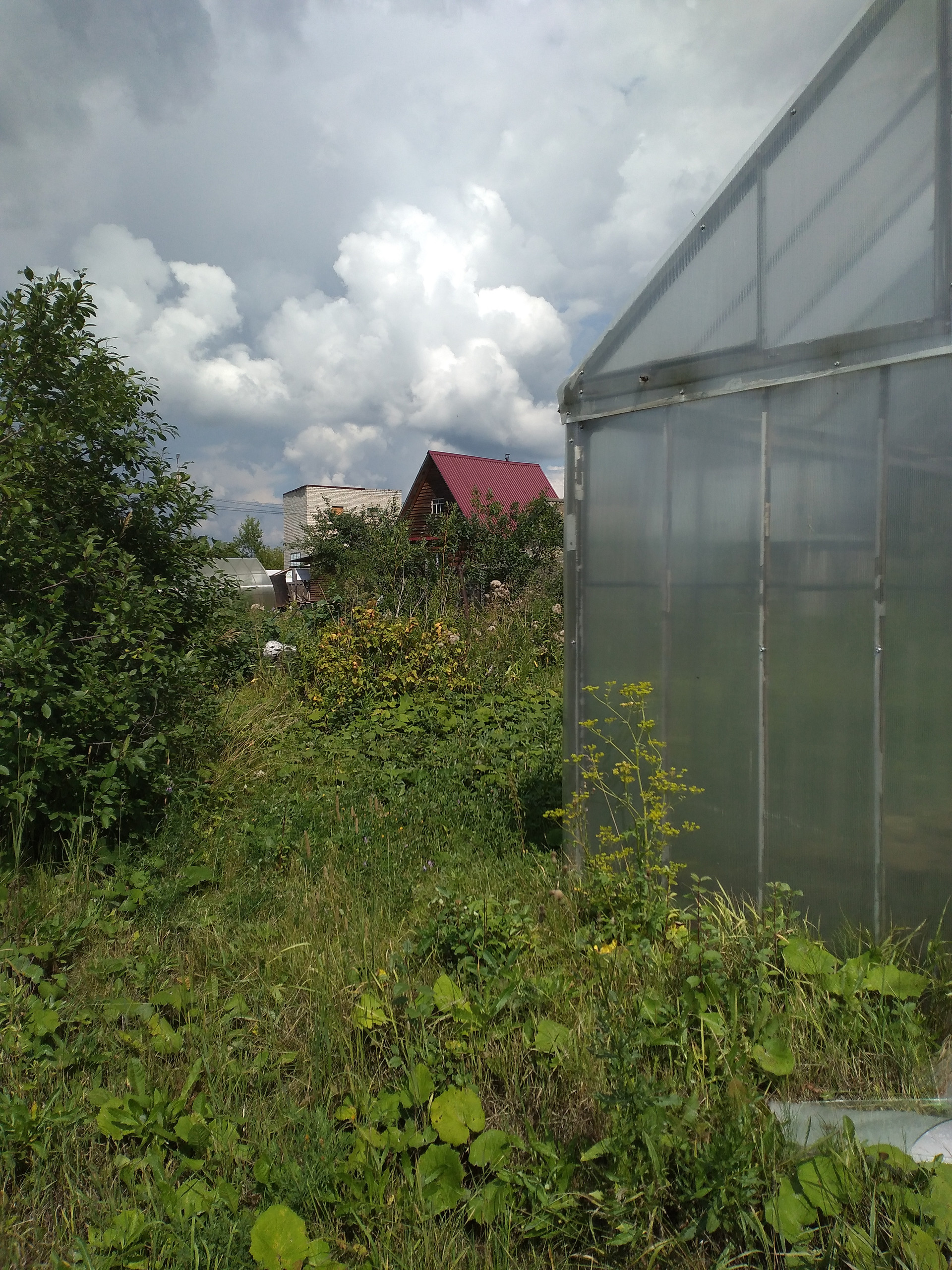 Большая теплица требует ремонта, поликорбонат куплен, лежит в доме