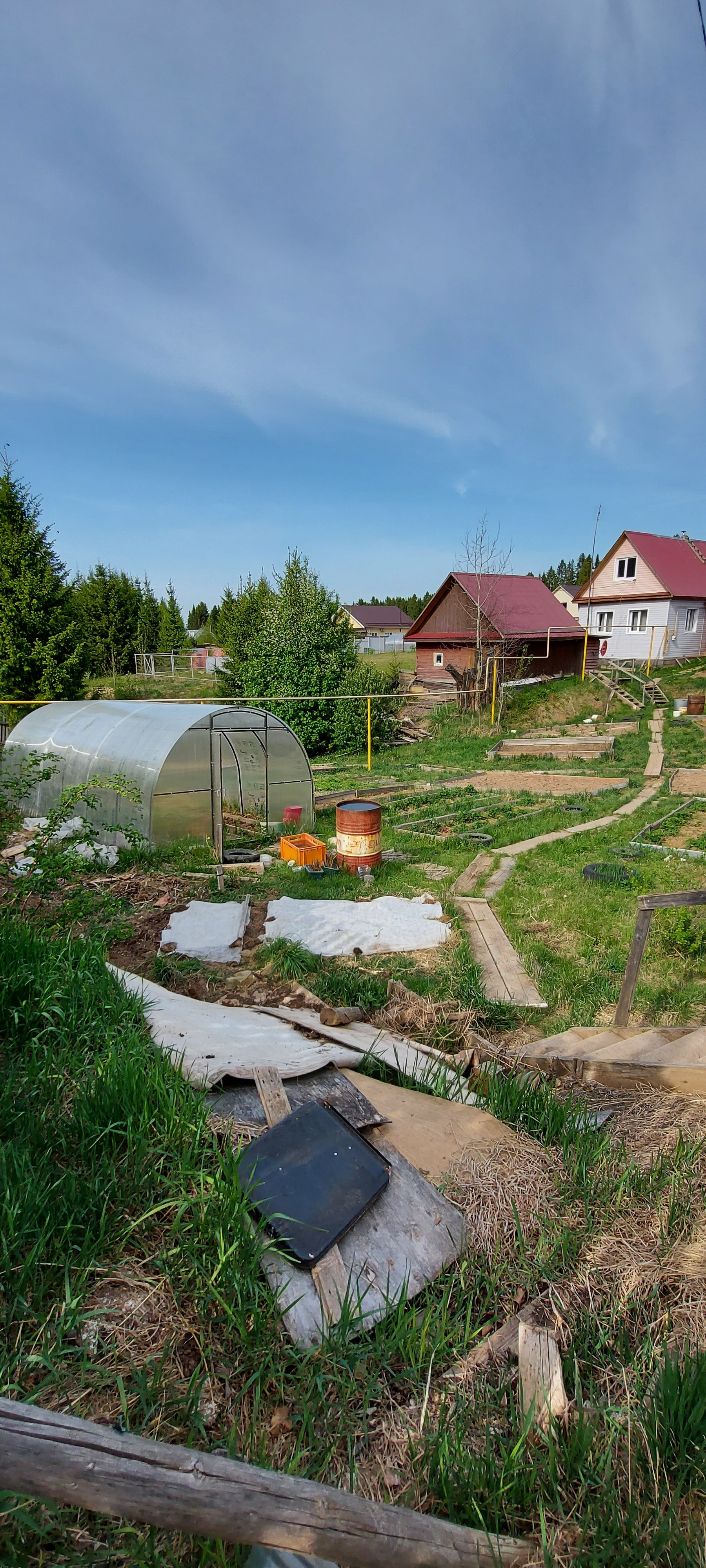 Имеются посадки, теплица, великолепный вид и воздух.