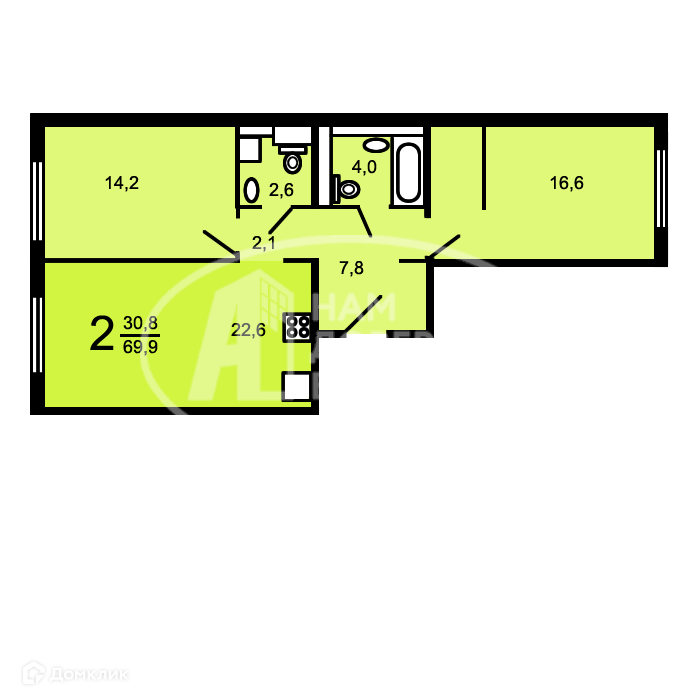 Общая площадь 48 м2