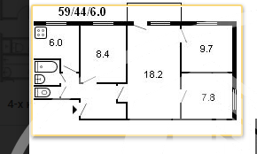 Общая площадь: 58.3 м2