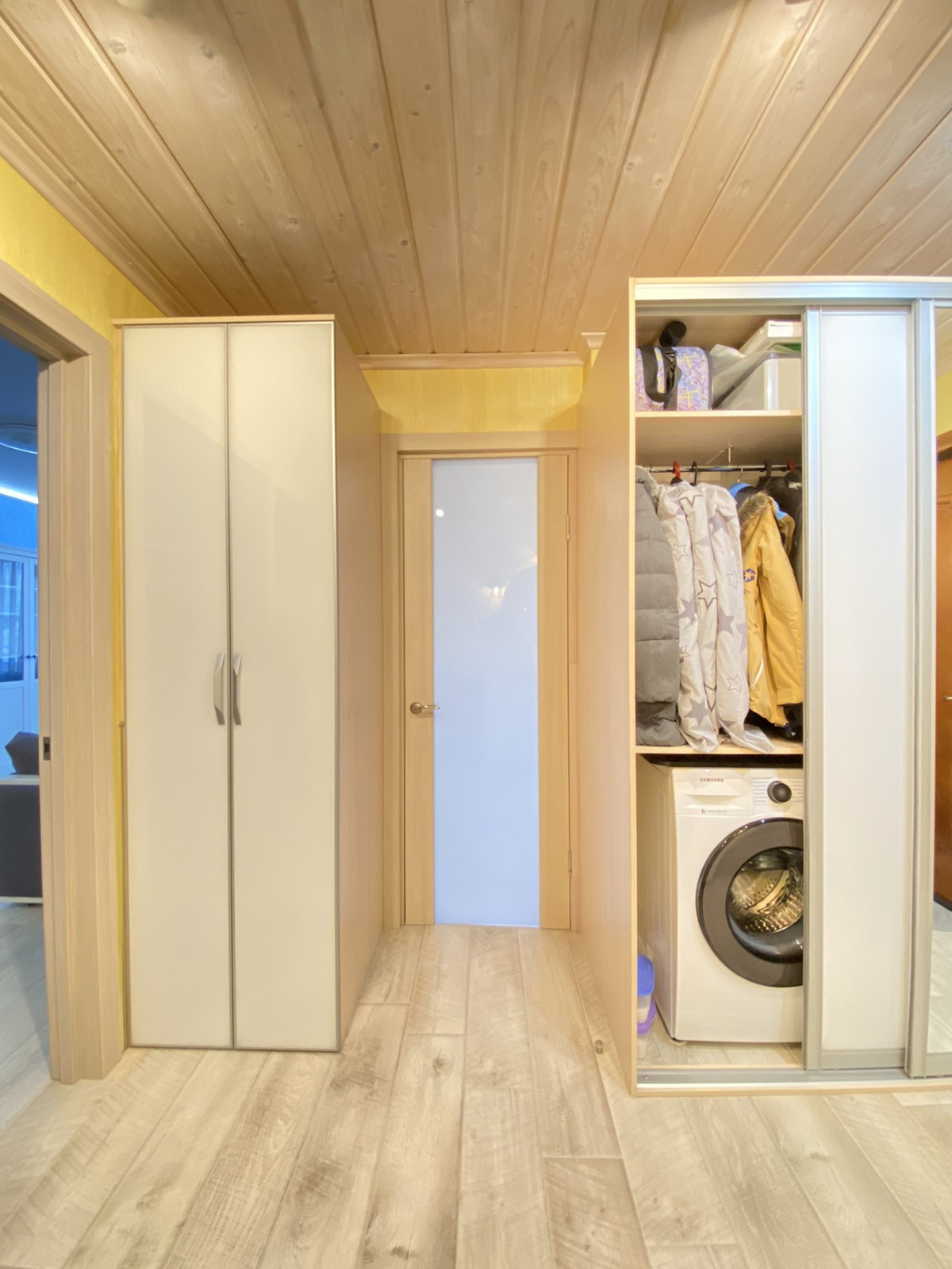 •в прихожей встроенные шкафы с УДОБНОЙ СИСТЕМОЙ ХРАНЕНИЯ.