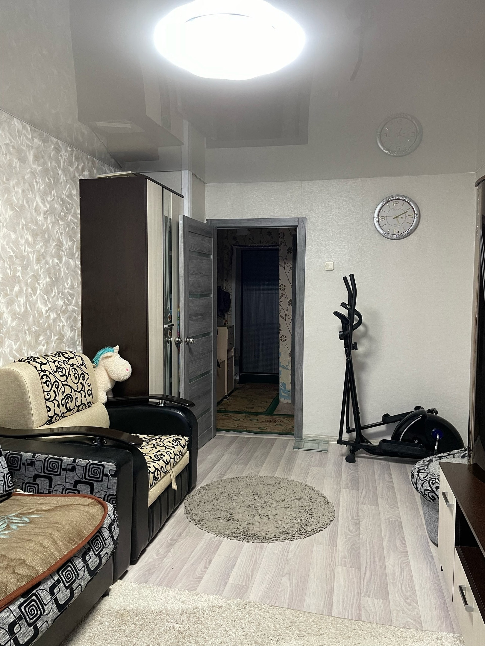 Сделан косметический ремонт, новые межкомнатные двери, балкон застеклен, везде стоят стеклопакеты.