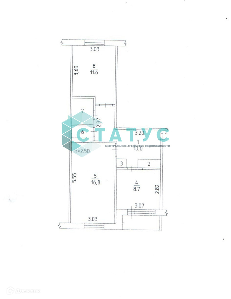 Общая площадь 52.2 м2
