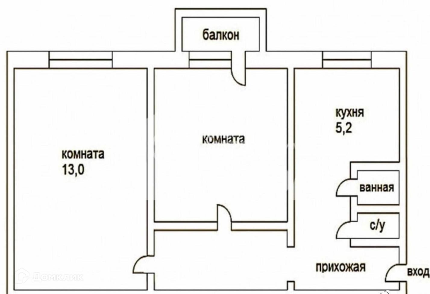 Общая площадь 52.6 м2
