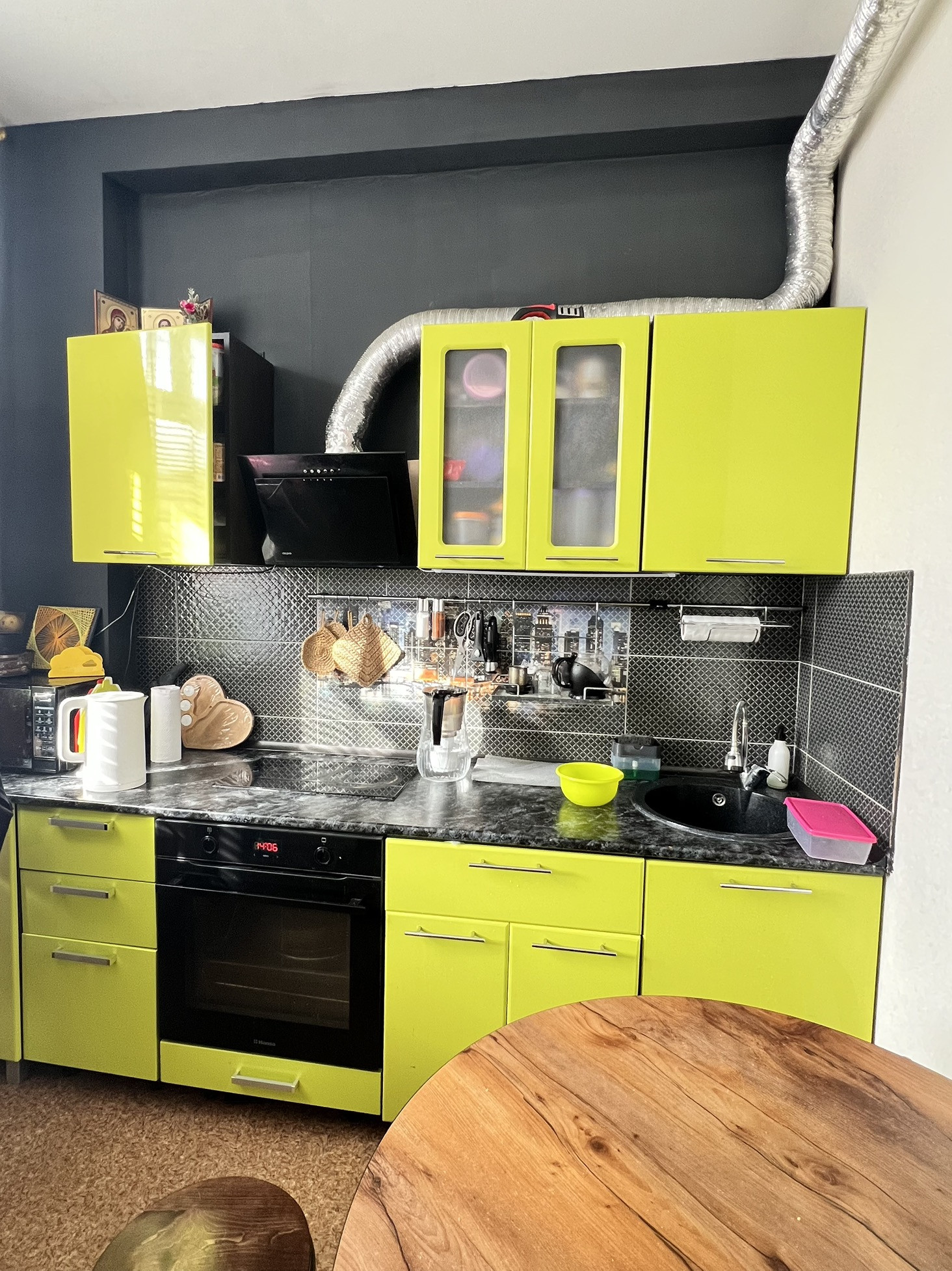 В квартире сделан косметический ремонт. В подарок  останется отличный кухонный гарнитур.