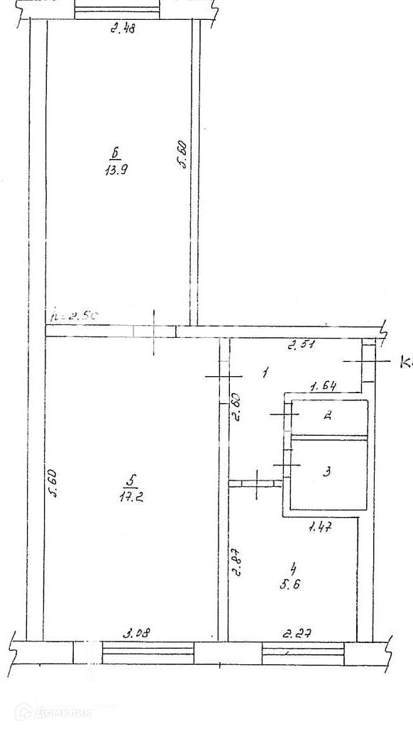 Общая площадь 47.6 м2