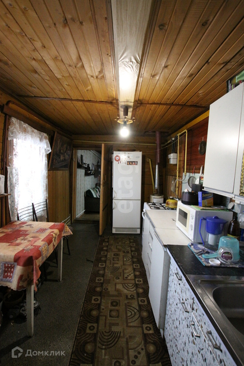 Веранду разделили пополам на комнату и летнею кухню. Не отапливается. Через веранду выход на задний участок.